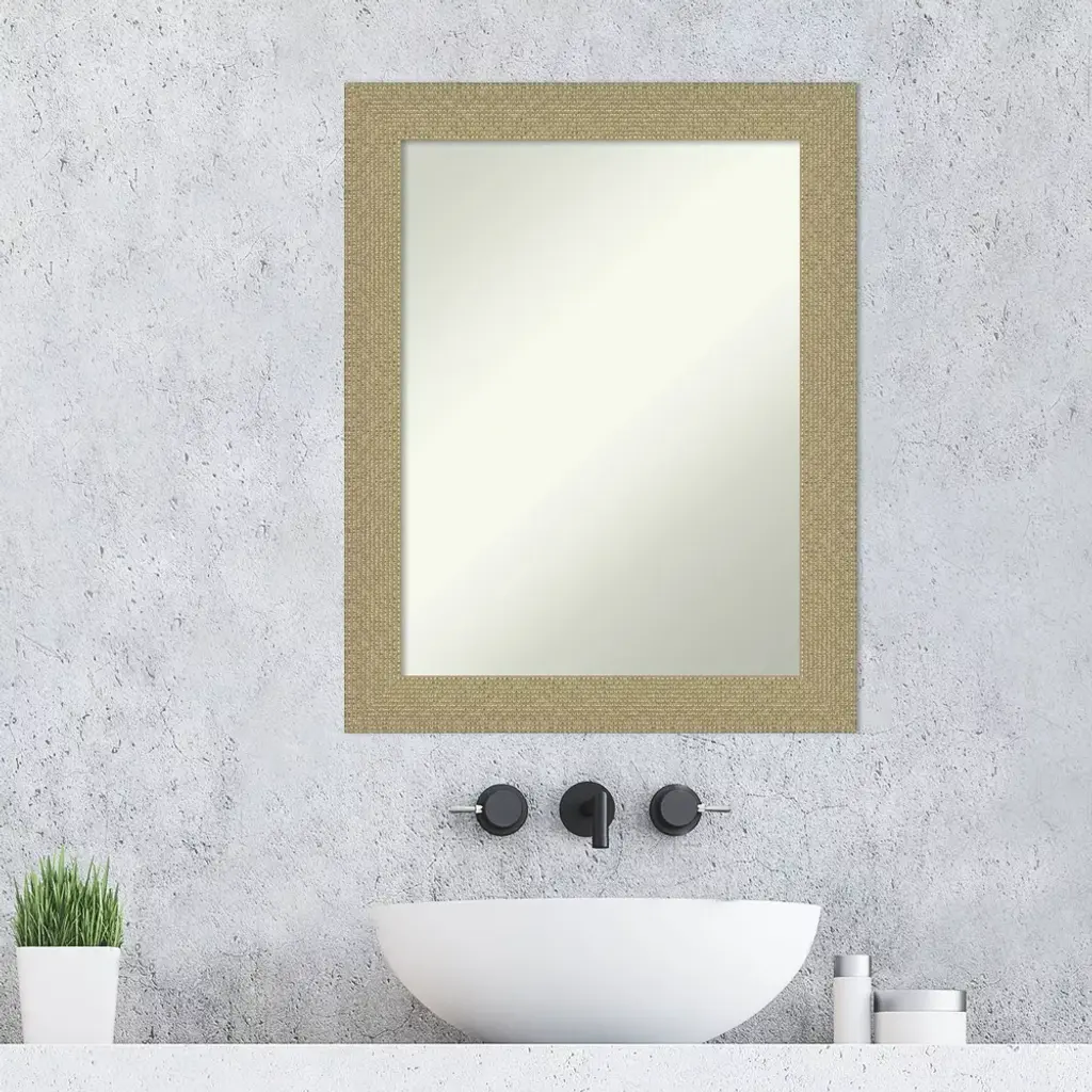 Give your bathroom the finishing touch with this Non-Beveled Wall Mirror framed with the Mosaic Gold frame. Individually made using traditional custom framing techniques, it has the quality you would expect from your local frame shop. It holds its value with premium finishing that can be appreciated up close. Because of our attention to detail and focus on artistry, architects, interior designers, and homeowners alike choose this mirror to create beautiful living spaces.