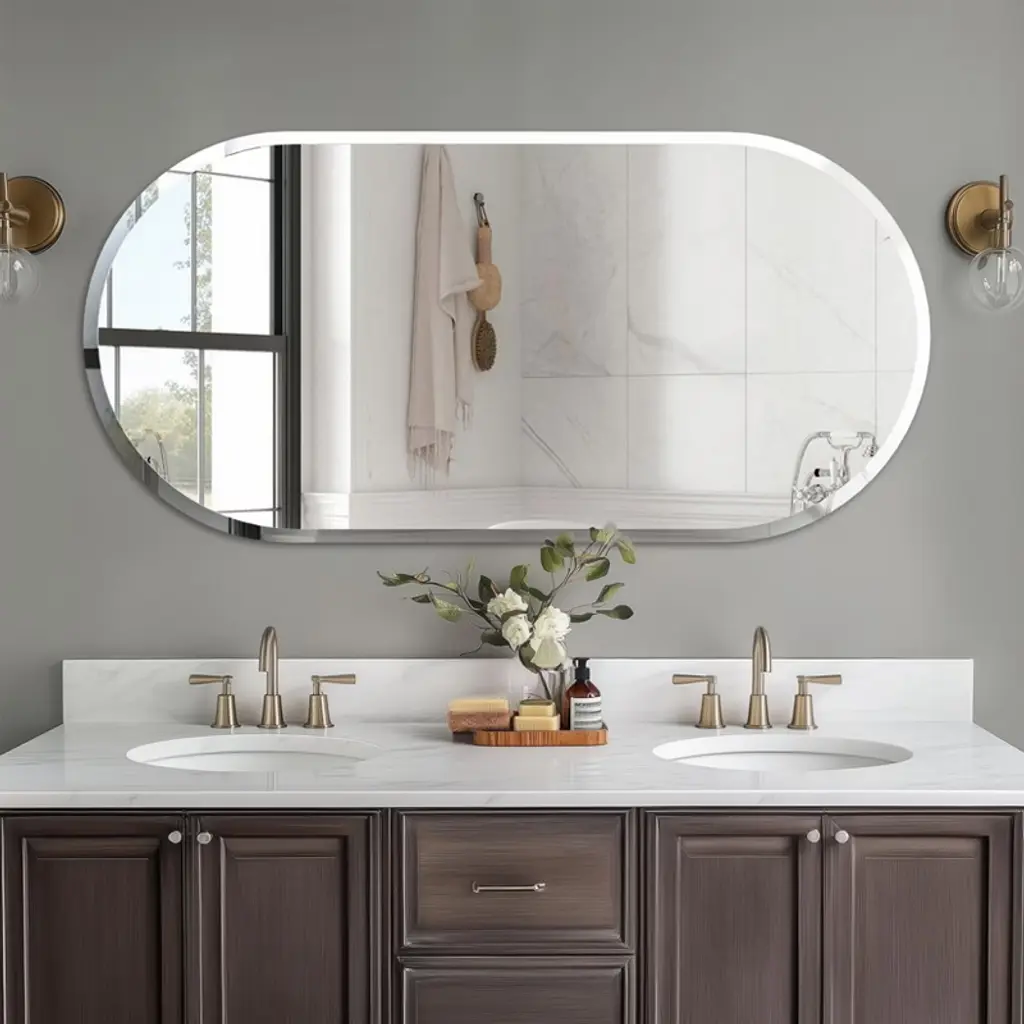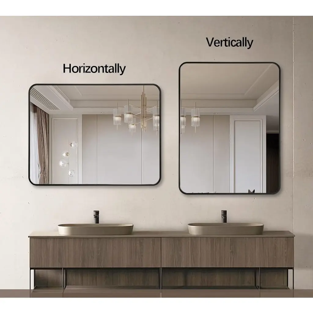 Black Metal Framed Rectangular Bathroom Wall Mirror - Stylish & Durable