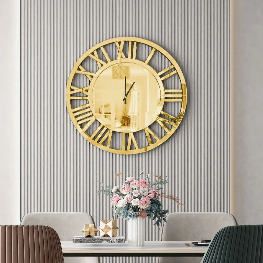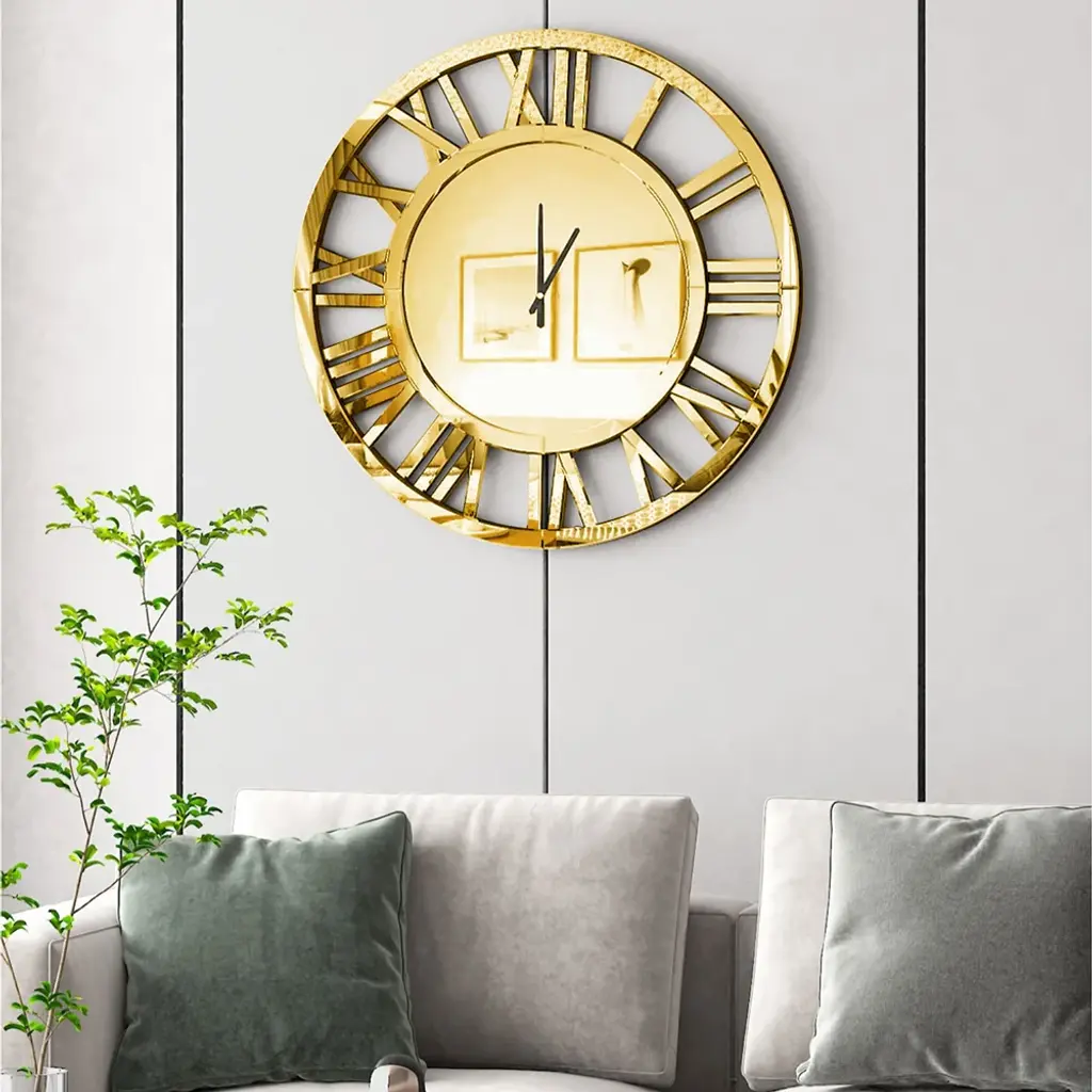【Acrylic Mirror Surface】: It is a wall clock and a mirror, which reflects a beautiful and real picture according to the different environments. 【Roman Numeral Design】: Exquisite craftsmanship, attention to every detail, presents a unique and elegant decorative wall clock. 【Silent Clock】:metal paint pointer,smooth and not stuck, high-quality silent movement, indicate the time accurately. 【Home Decoration】:This is a large wall clock with Roman numerals to decorate your living room,bedroom,kitchen,and shop.