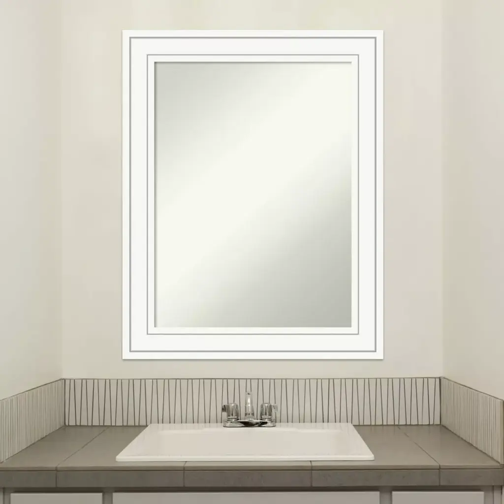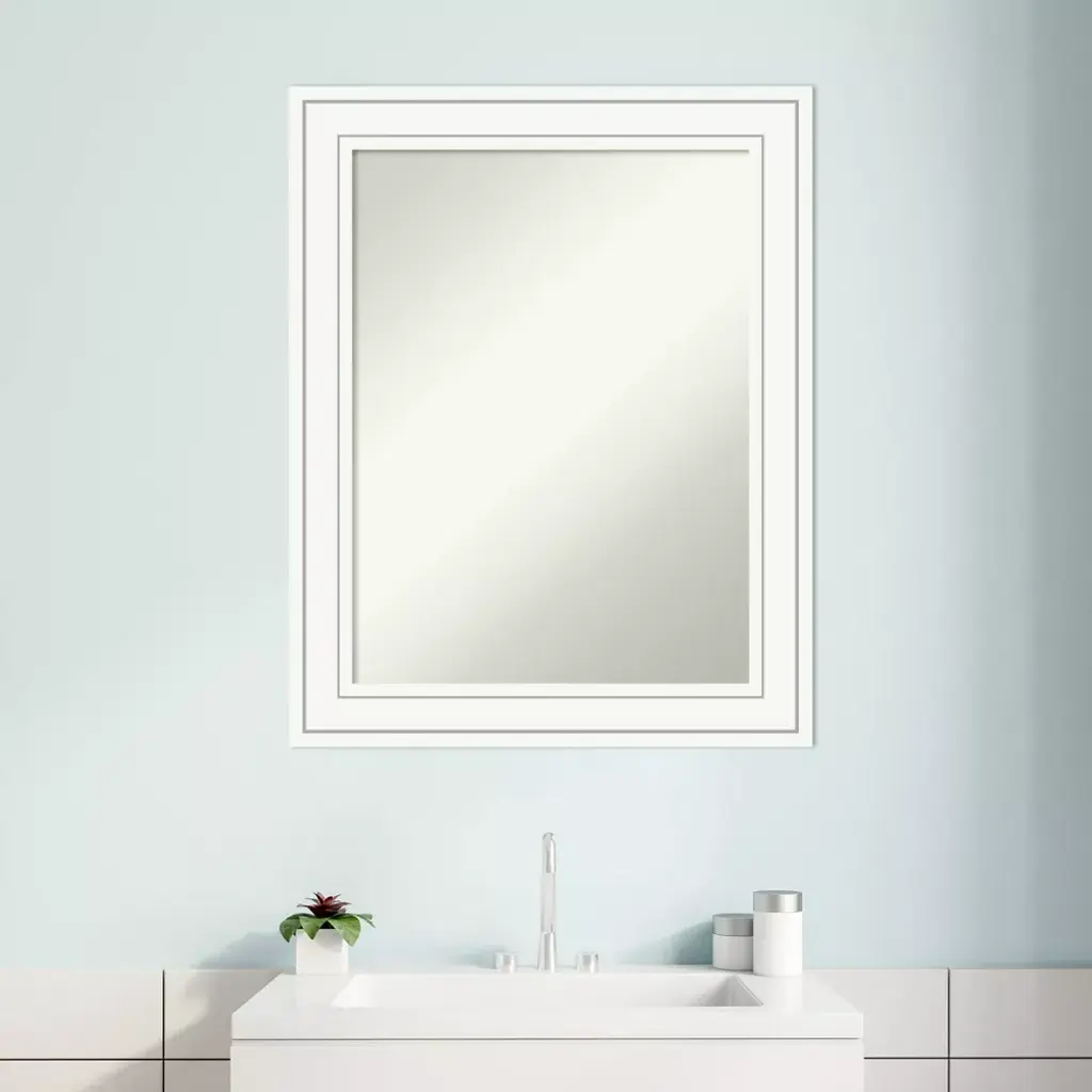 Give your bathroom the finishing touch with this 100% real wood Non-Beveled Wall Mirror framed with the Craftsman White frame. Individually made using traditional custom framing techniques, it has the quality you would expect from your local frame shop. It holds its value with premium finishing that can be appreciated up close. Because of our attention to detail and focus on artistry, architects, interior designers, and homeowners alike choose this mirror to create beautiful living spaces.