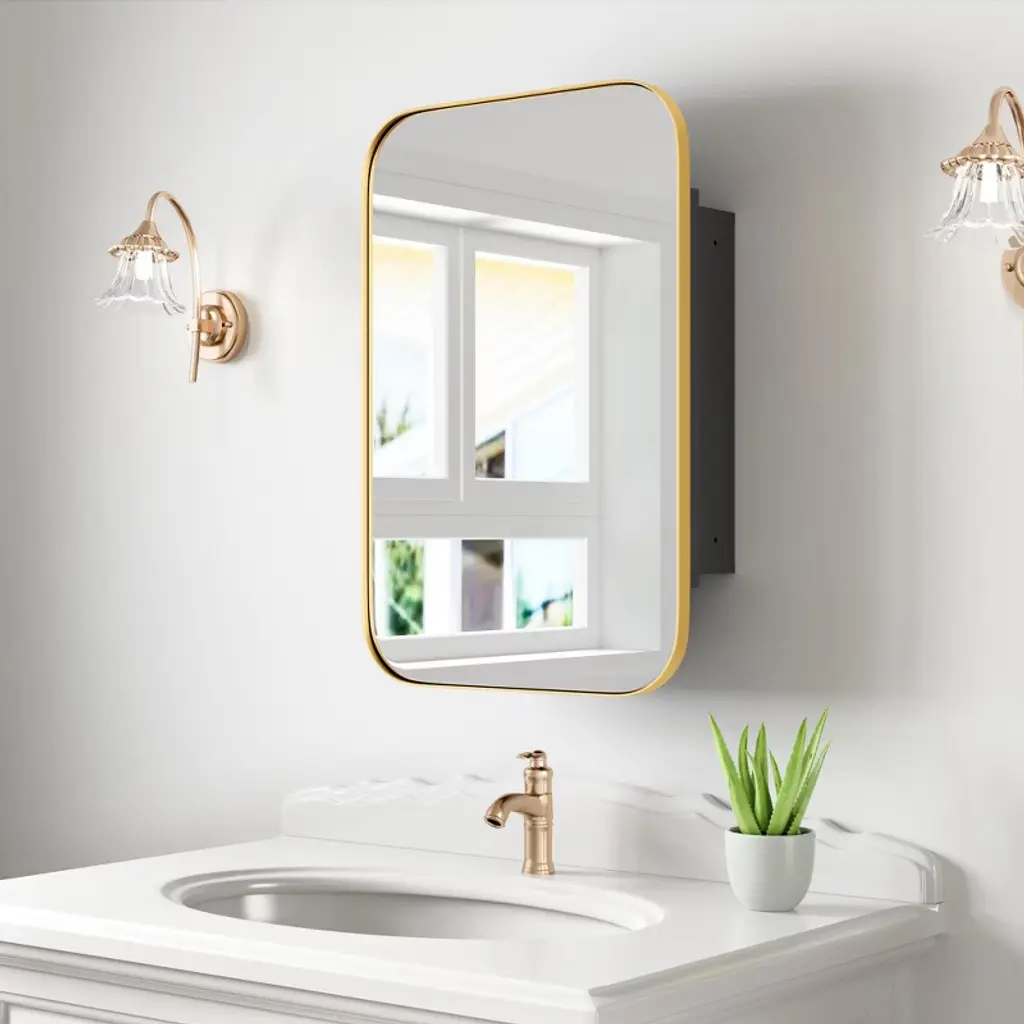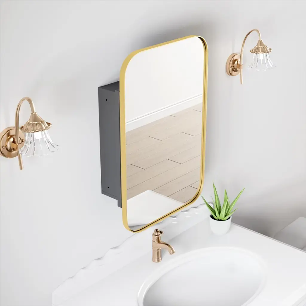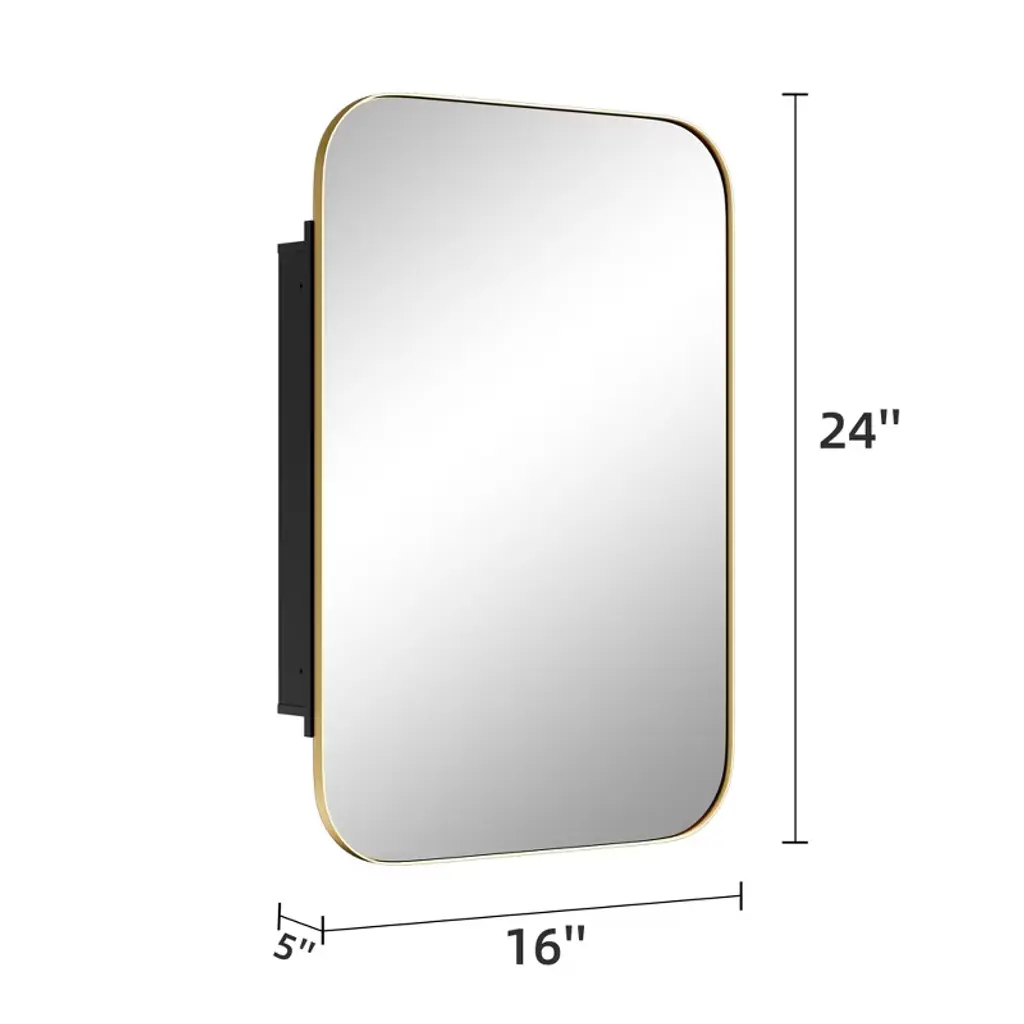 24 * 16 Inch Gold Rectangular Bathroom Medicine Cabinet With Mirror
