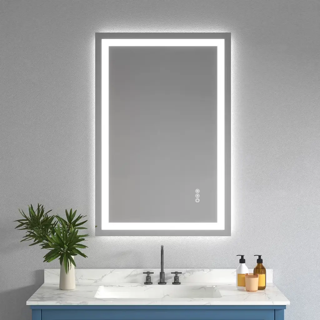 LED bathroom mirror supports 3 color temperatures - warm light, natural light and white light. Short press to switch color temperature, long press to adjust brightness. Meet the lighting needs of different people and is an excellent decoration for the bathroom.The anti-fog function of the bathroom mirror can quickly remove water vapor on the mirror surface, and no need to wipe the mirror after bathing, and can also maintain a clear view.LED bathroom mirror features an aluminum frame, making the mirror more exquisite and durable. The high-definition mirror surface ensures clear, undistorted reflections.LED bathroom mirrors can enhance a better lighting atmosphere for your space, but are not recommended to be used as independent lighting, please use them in combination with other lighting tools.