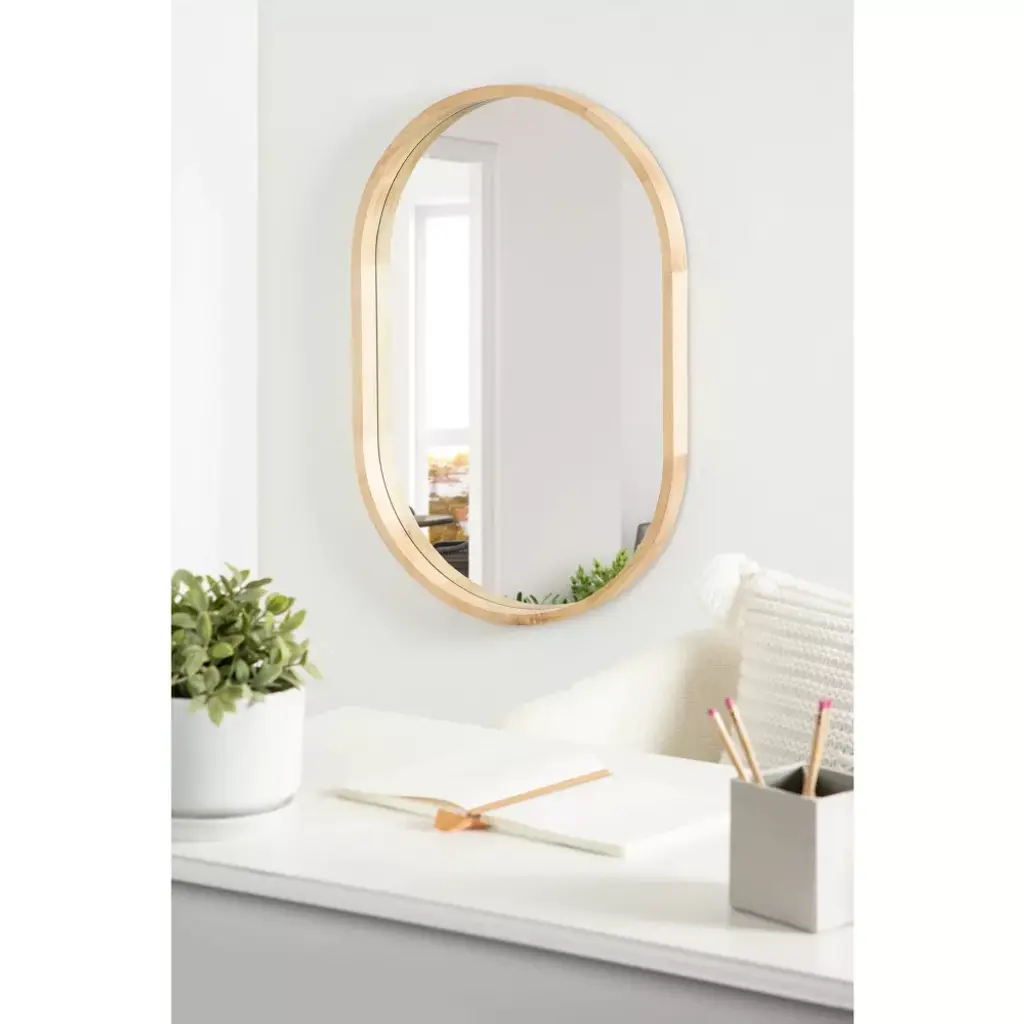 24" X 36" Hutton Wood Framed Capsule Wall Mirror Natural: Scandinavian Style, Poplar Frame - Kate & Laurel