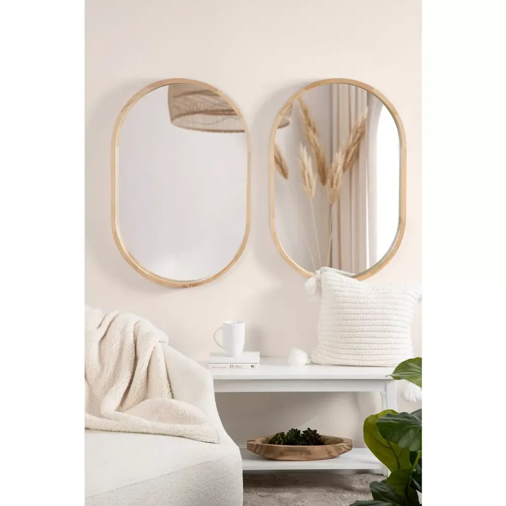 Looking to add some vibrancy to the darker corners of your home? Or are you trying to redecorate with a clean, modern style? Either way, the Hutton wall mirror is the perfect addition to your wall. Inspired by Scandinavian simplicity, the Hutton features a solid poplar wood frame with a natural finish, giving it that back-to-basics look. The Hutton also has an on-trend, contemporary capsule shape, inspired by modern geometry. It's a subtle yet commanding focal point that looks beautiful in various spaces in your home. The overall dimensions of this oval mirror are 24 inches by 2 inches by 36 inches, making it fantastic as a decorative statement piece or as a bathroom mirror above your vanity. If you decide to decorate your home with this mirror, you'll find that it opens your space and makes it feel larger, harnessing light sources to create brightness across your room. It's 2-inch depth also draws the eye, creating a dimensional piece that is visually striking. This mirror hangs vertically and horizontally with metal D-ring hangers, making it a versatile wall mirror for any area of your home.