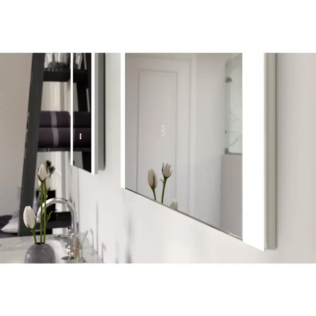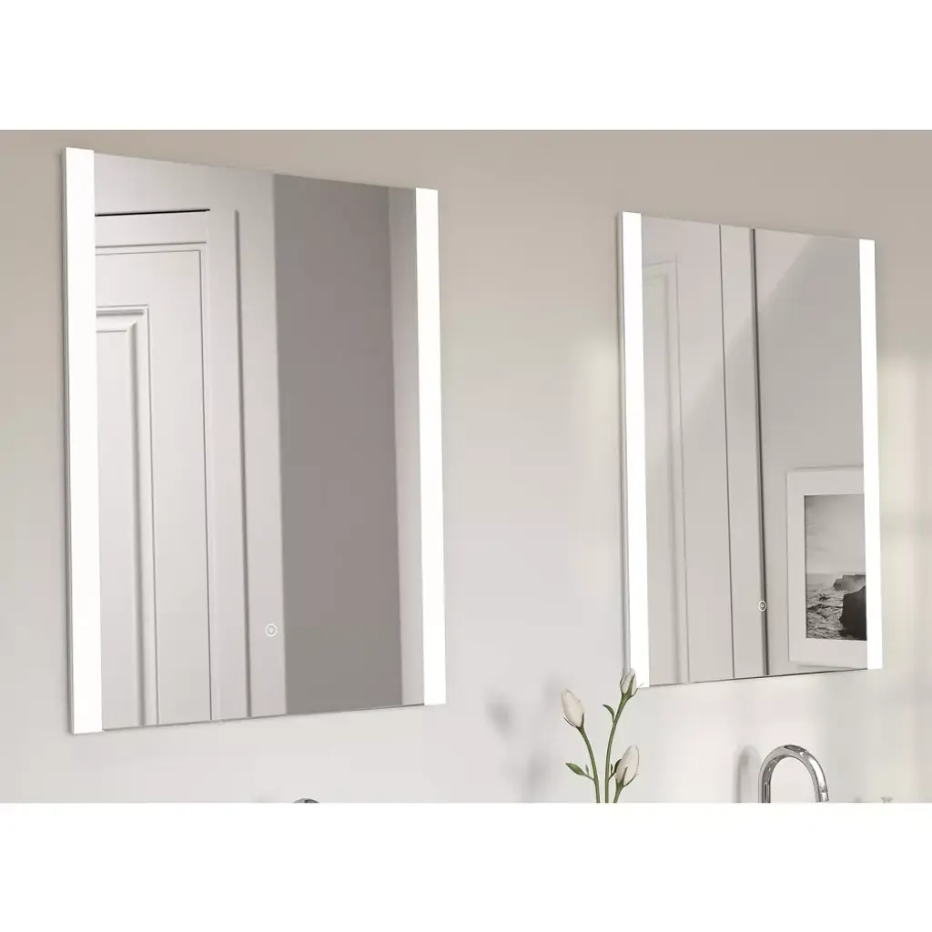 Bring more light into your morning routine with a Tosca LED mirror from the Martina collection. The Martina LED mirror features a sleek frameless design, parallel LED strips, and an anti-fog pad to clear your mirror in steamy environments. The LED light has a dimmable setting allowing you to choose the intensity of each light setting. Measuring at 24 x 30 inches, this mirror is perfect to place above your existing bathroom vanity or entryway table.