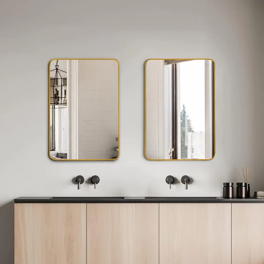 24x32 Inch Gold Metal Framed Rectangular Bathroom Wall Mirror - Stylish & Durable