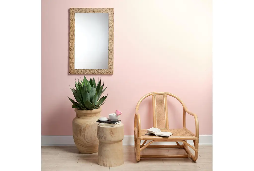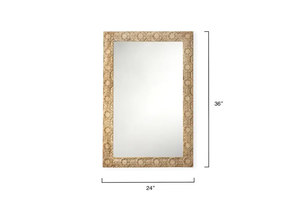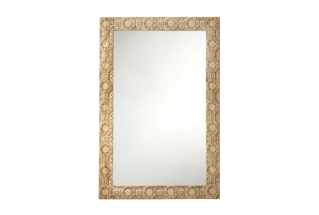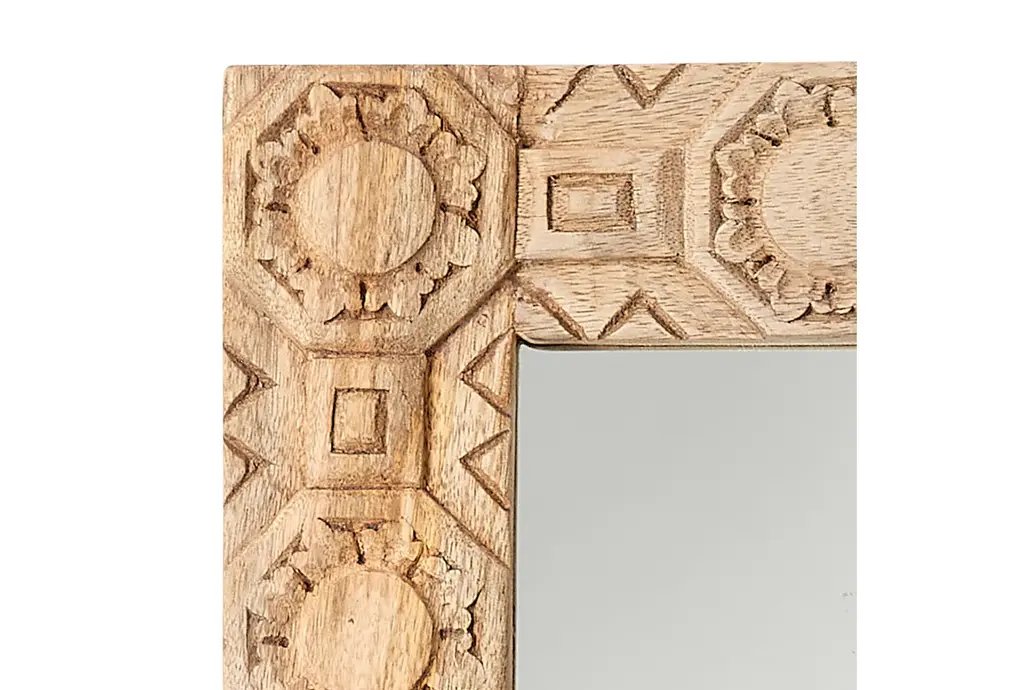 24X36 Brown Natural Hexagon Relief Carved Wood Rectangle Wall Mirror