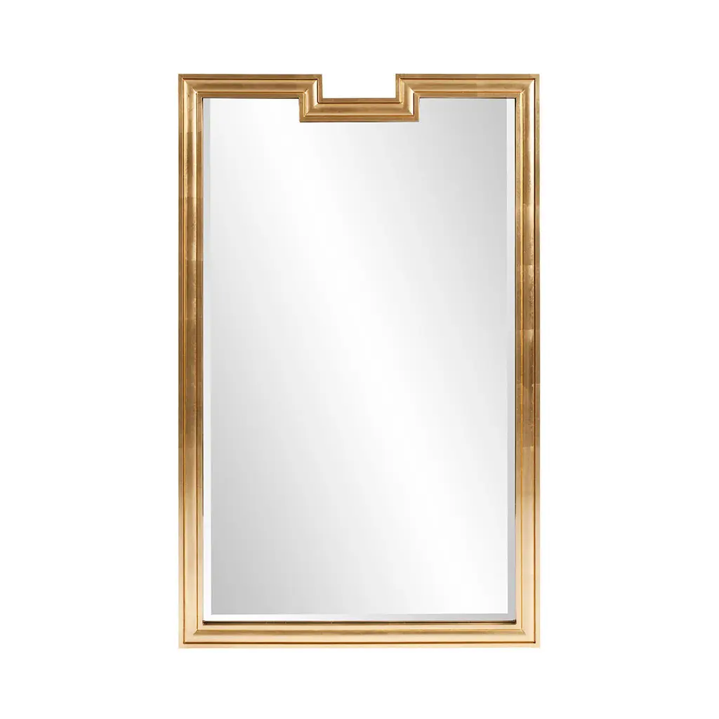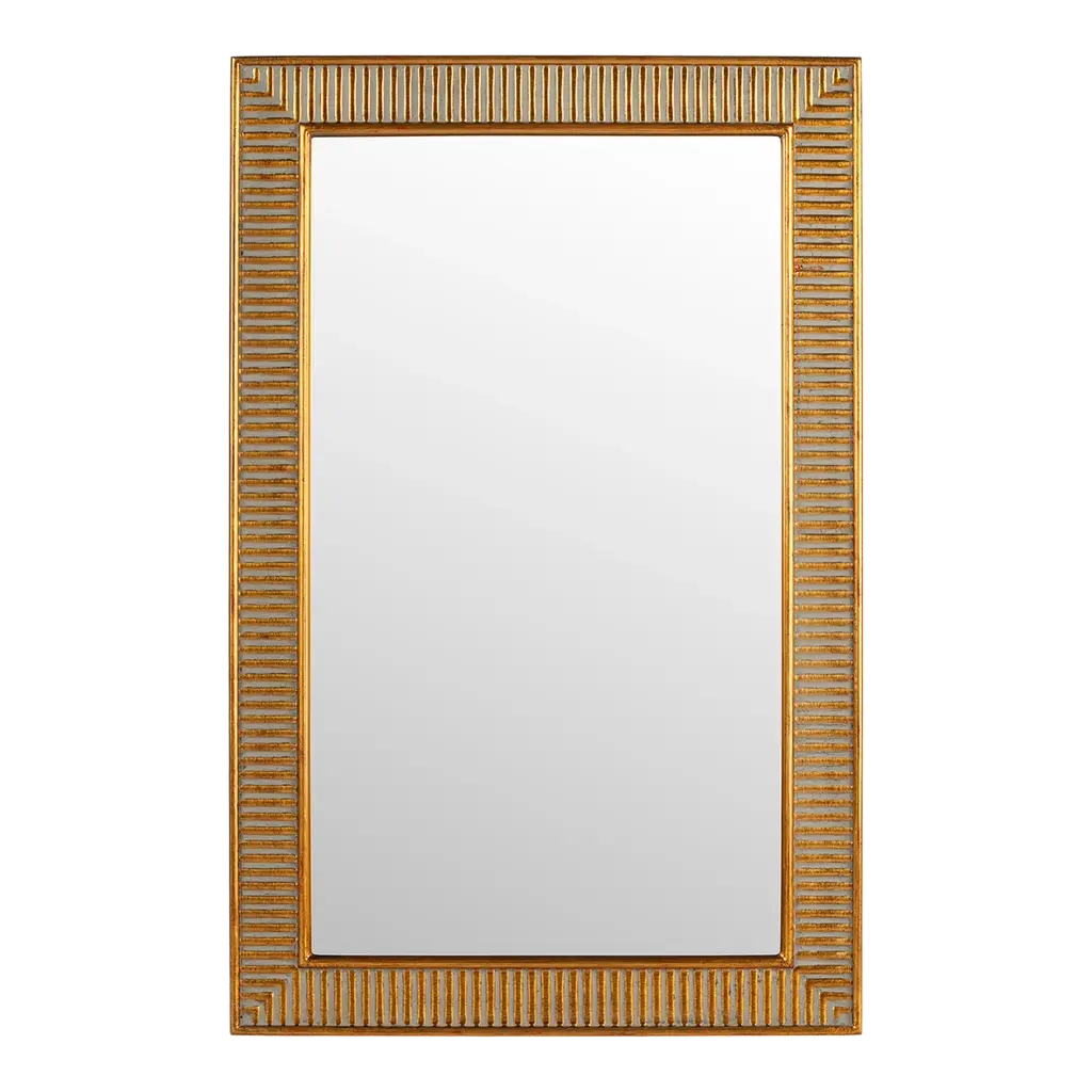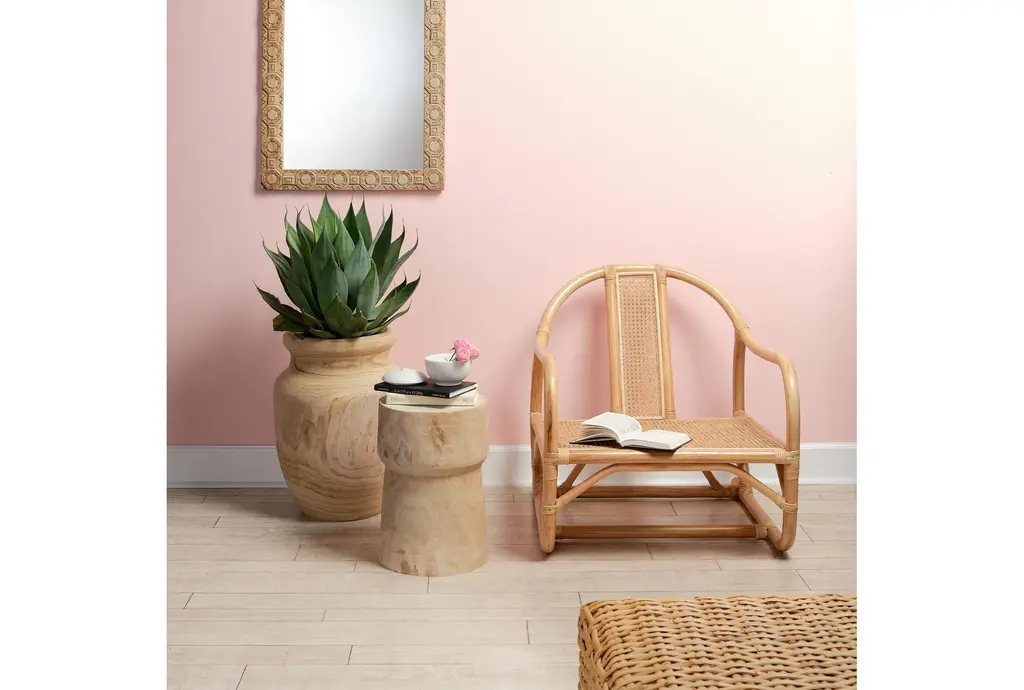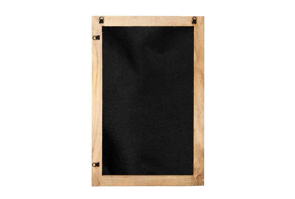 24X36 Brown Natural Hexagon Relief Carved Wood Rectangle Wall Mirror