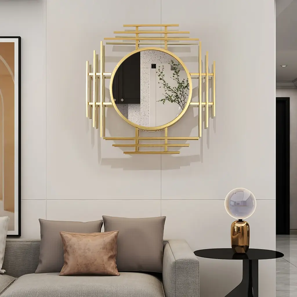 28" Luxury 3D Geometric Gold Metal Wall Mirror Overlapping Home Decor For Entryway