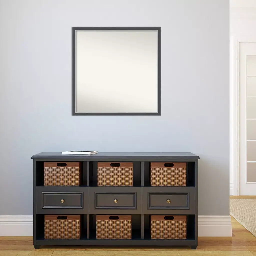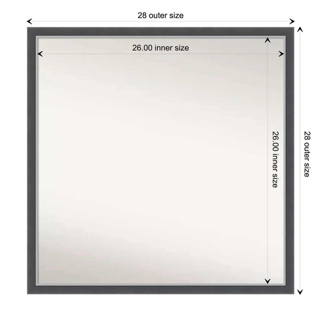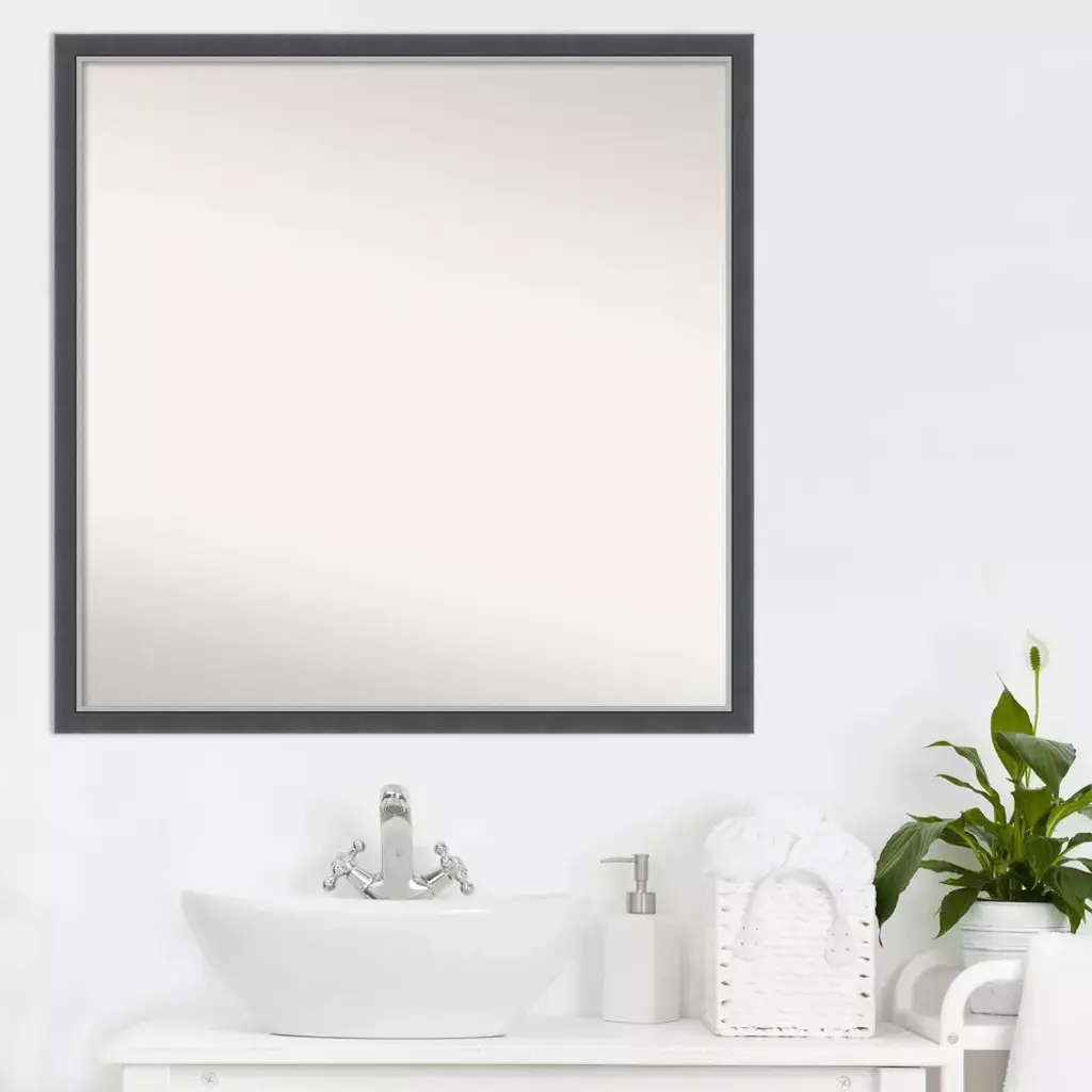 28" X 28" Non-beveled Eva Thin Bathroom Wall Mirror Black - Amanti Art: Square Polystyrene Frame, Wall Mounted