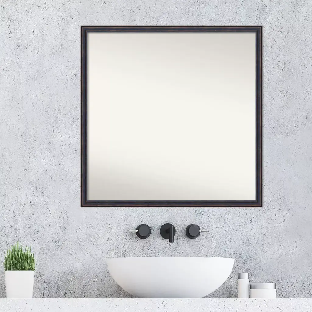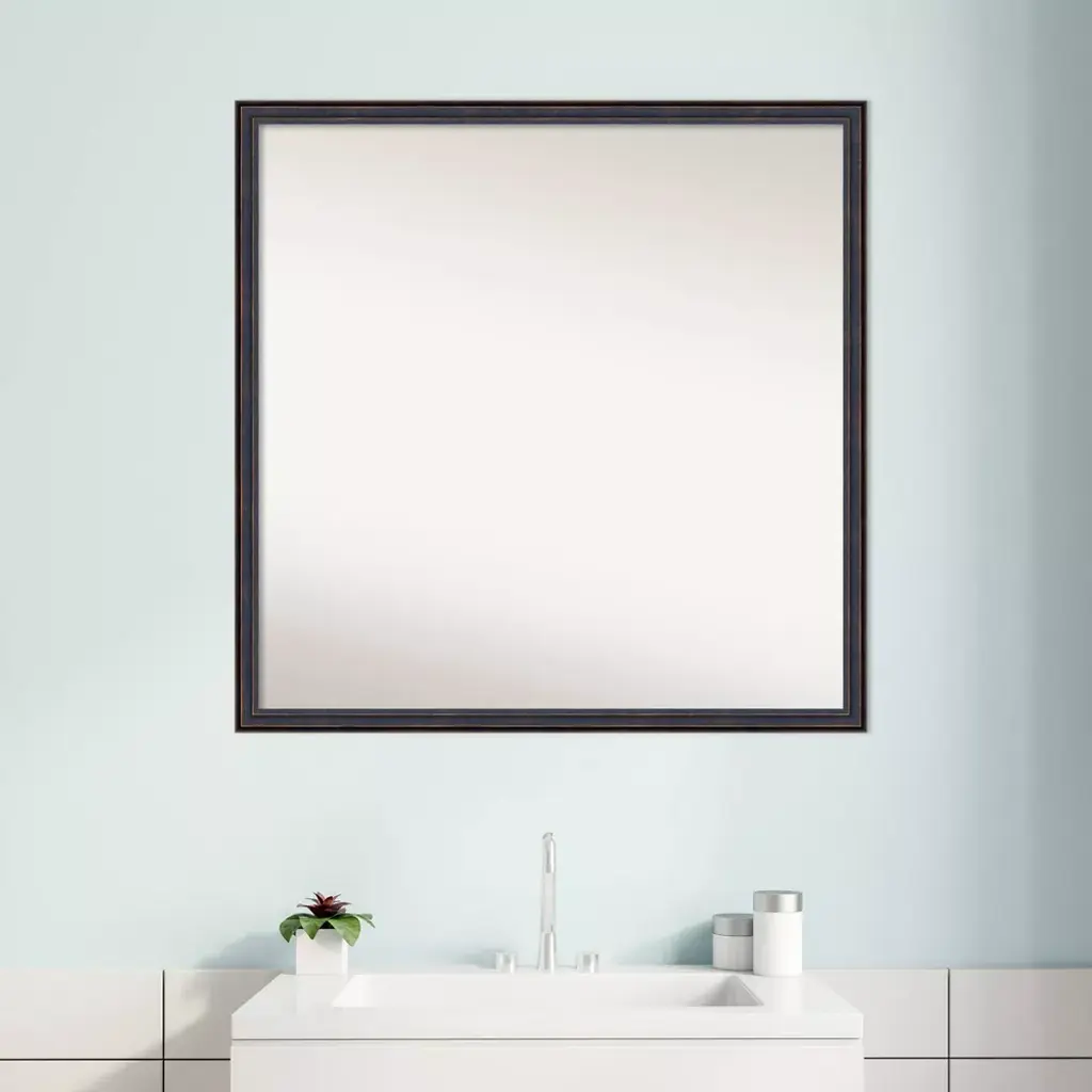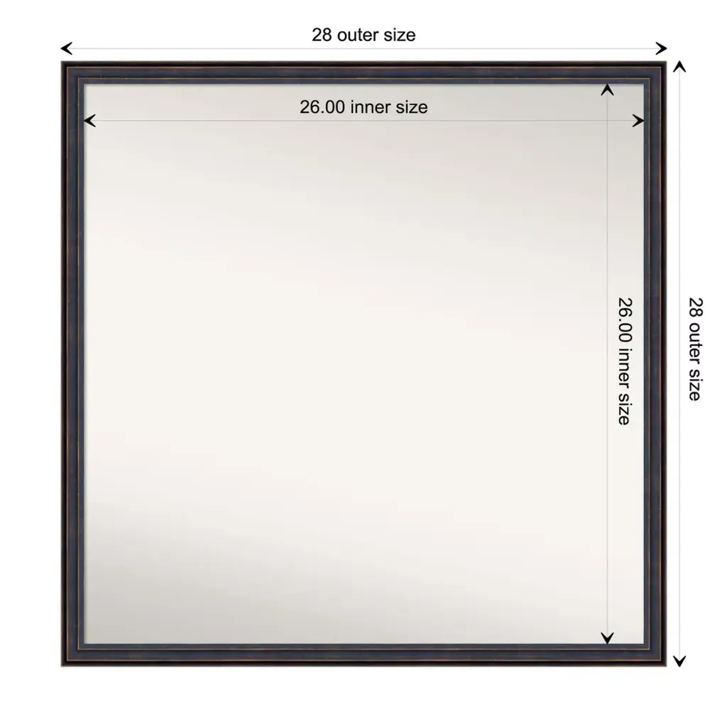 28" X 28" Non-beveled Scoop Wood Bathroom Wall Mirror Dark Bronze - Amanti Art: Modern Square Design, Wall Mount, Wood Frame