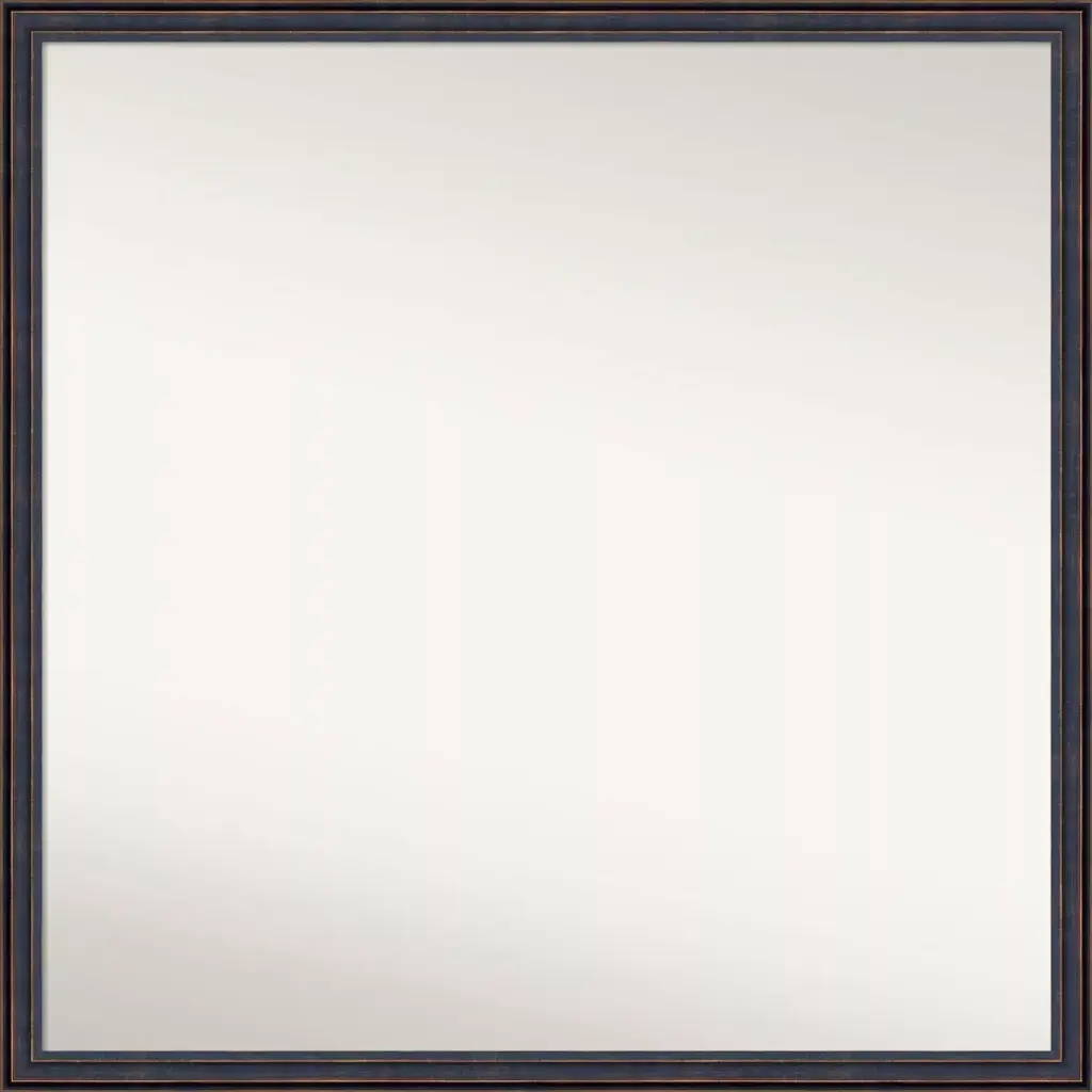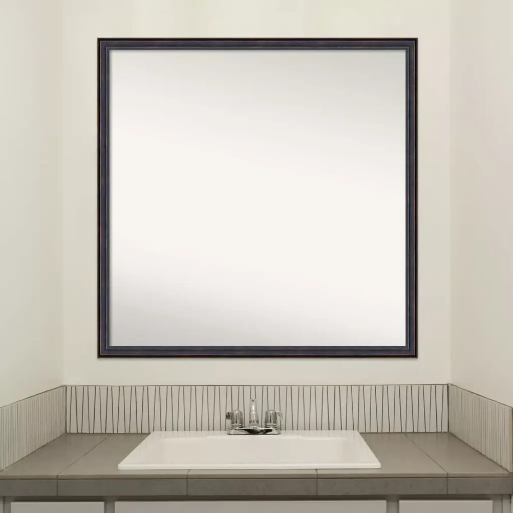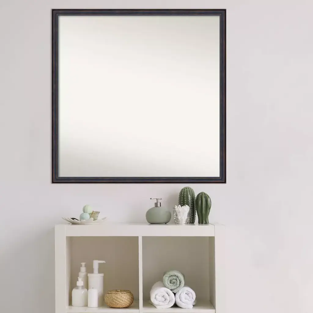 28" X 28" Non-beveled Scoop Wood Bathroom Wall Mirror Dark Bronze - Amanti Art: Modern Square Design, Wall Mount, Wood Frame