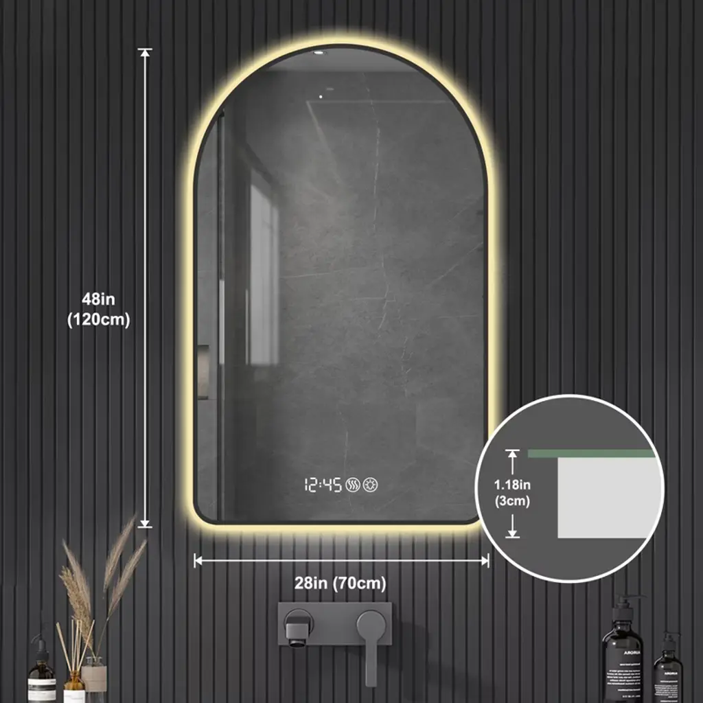 28"x48"arched Led Mirror For Bathroom, Time And Temperature Display, Backlight, Anti-fog, Dimmable, W/3 Color Temperatures- Modern Vanity Light Mirror
