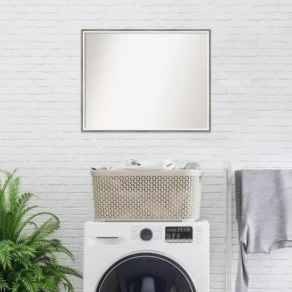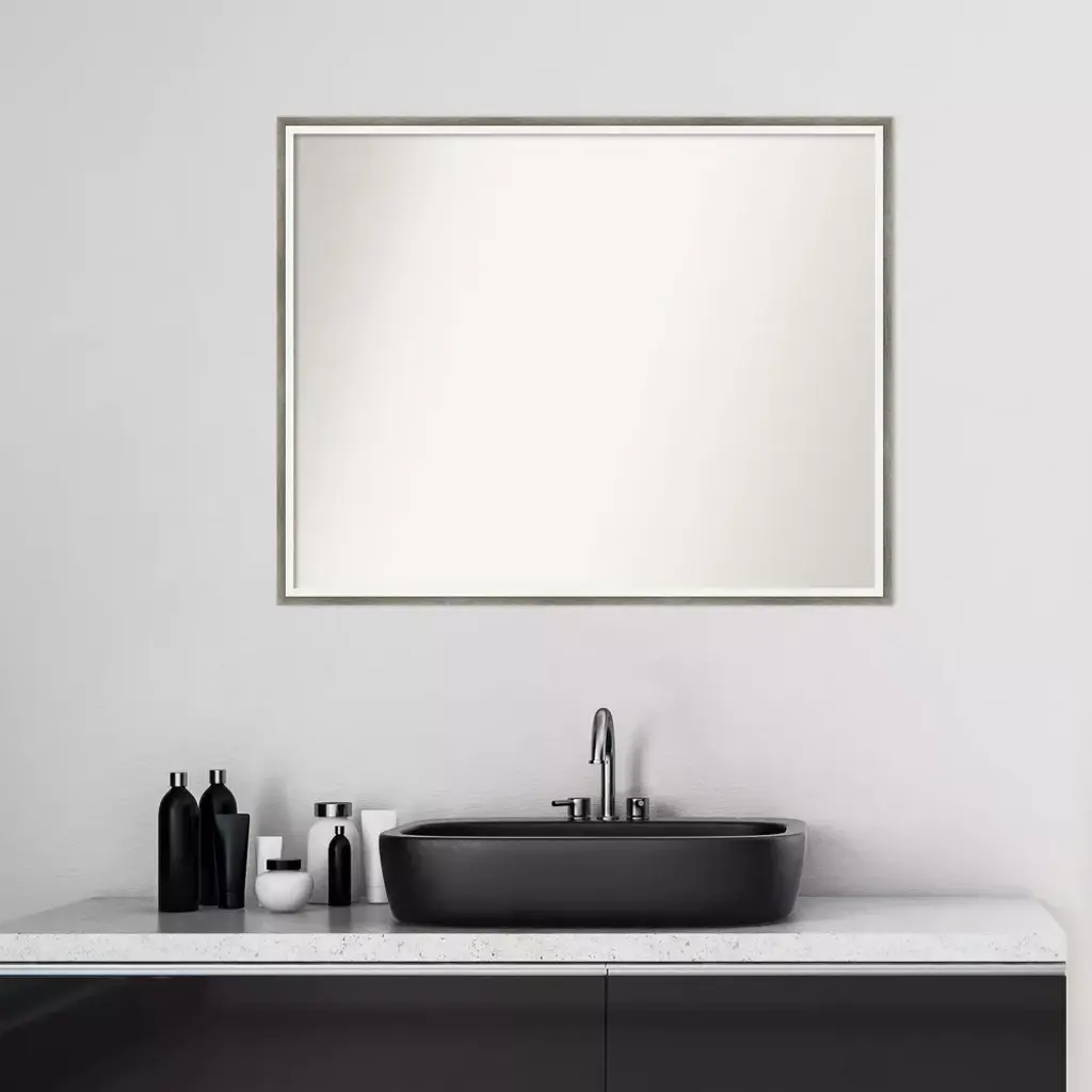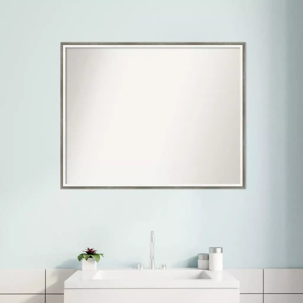 29" X 23" Non-beveled Lucie Wood Bathroom Wall Mirror Silver - Amanti Art: Modern Rectangle, Includes Mounting Hardware