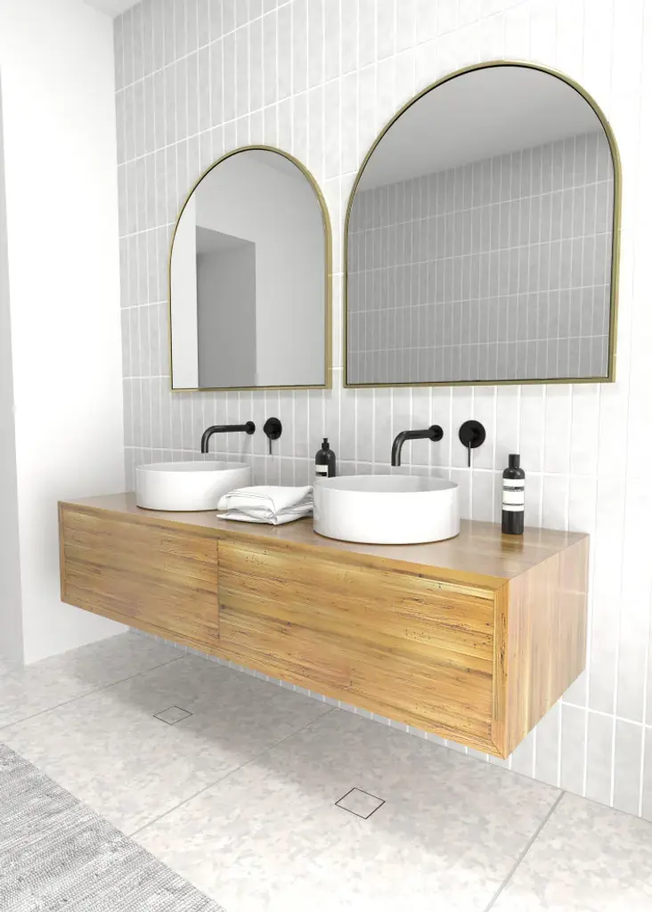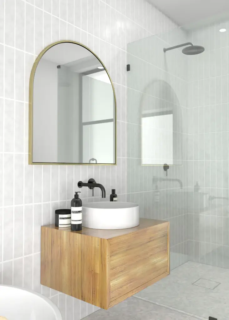 30" W X 32" H Arch Shape Stainless Steel Framed Mirror, Black, Satin Brass