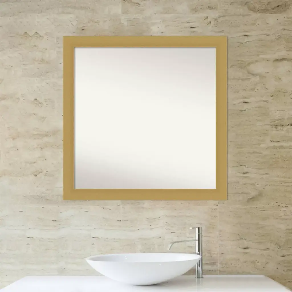 30" X 30" Non-beveled Grace Bathroom Wall Mirror Brushed Gold - Amanti Art: Square Polystyrene Frame, Wall Mounted