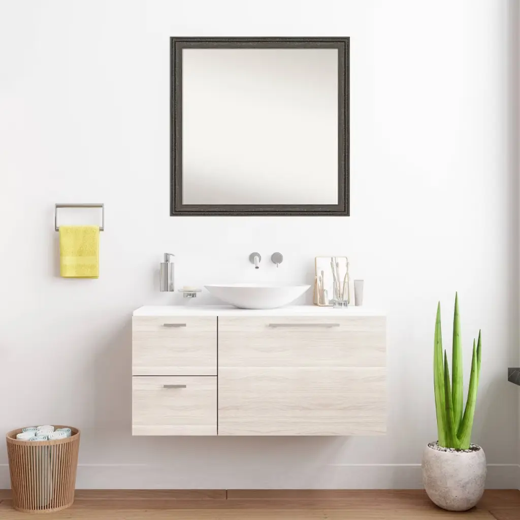 Give your bathroom the finishing touch with this 100% real wood Non-Beveled Wall Mirror framed with the Upcycled Brown Gray frame. Individually made using traditional custom framing techniques, it has the quality you would expect from your local frame shop. It holds its value with premium finishing that can be appreciated up close. Because of our attention to detail and focus on artistry, architects, interior designers, and homeowners alike choose this mirror to create beautiful living spaces.