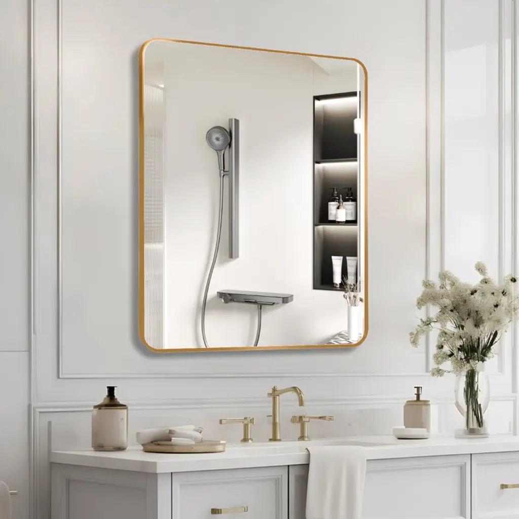 30x36 Inch Gold Metal Framed Rectangular Bathroom Wall Mirror - Stylish & Durable
