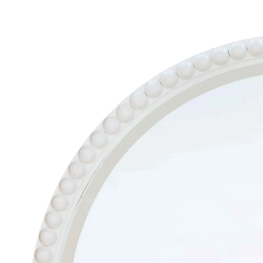 A perfect blend of rustic charm and timeless elegance. This mirror features a mahogany frame finished in our lightly distressed architectural white paint and adorned with intricate beading, adding a touch of sophistication and texture to any room. Ideal for living rooms, bedrooms, hallways, or bathrooms, this mirror not only enhances the visual appeal of your space but also creates the illusion of more light and depth. Dimensions: 32" W x 2" D x 32" HCustom finish options are also available. Contact us to learn more.