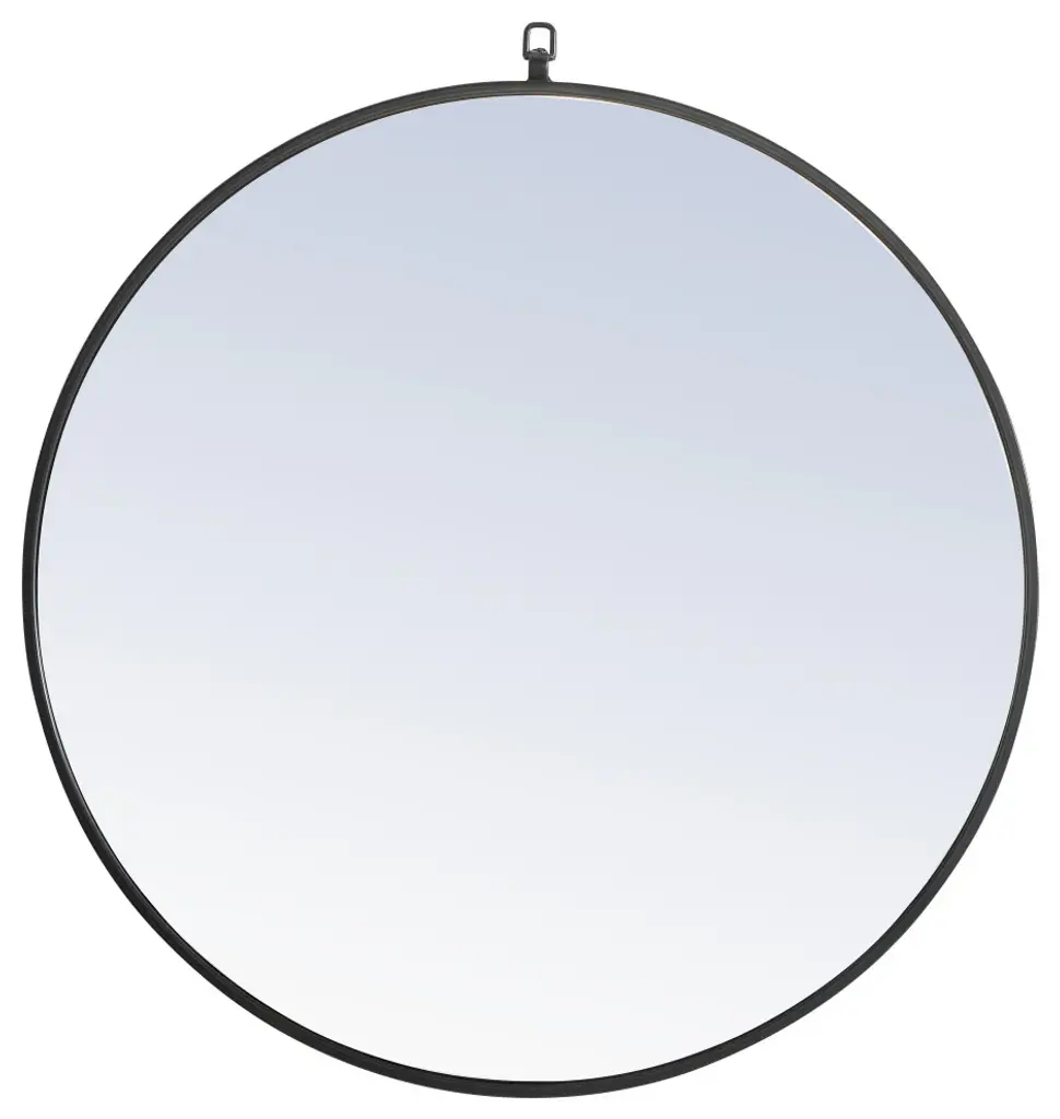 This alluring mirror is suitable for any area with its understated modest design. Its practicality makes it easy to match with other decor! It has a thin rounded metal frame and a decorative hook for hanging. The decorative metal hook is welded into the back of the frame making it secure and simple for hanging. Measurements: Diameter - 32 inchesmetal rounded frame with decorative top hookuse metal loop at the top for easy installationcan be hung in vertical positionhigh quality construction with a timeless designcontemporary sleek designclear mirrorcomes completely assembed