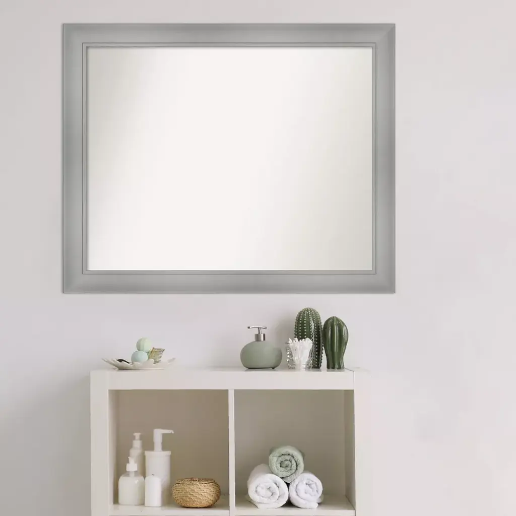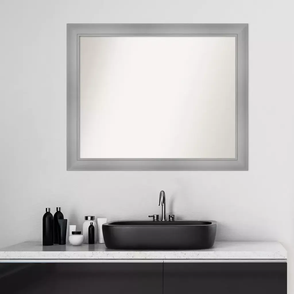 32" X 26" Non-beveled Flair Bathroom Wall Mirror Polished Nickel - Amanti Art