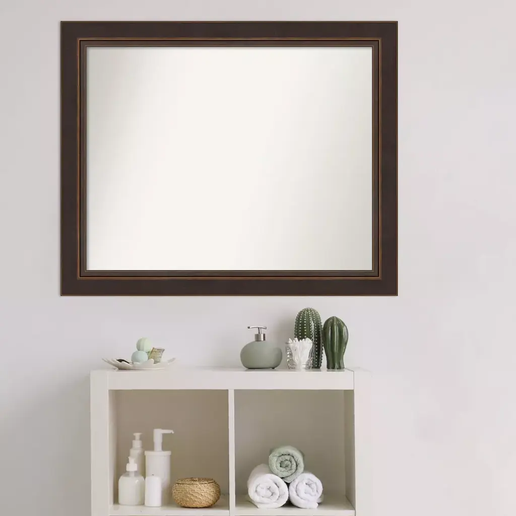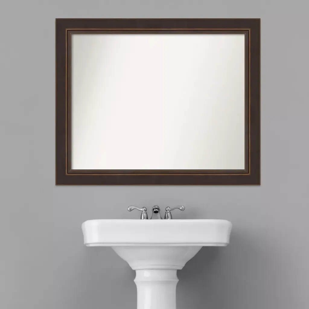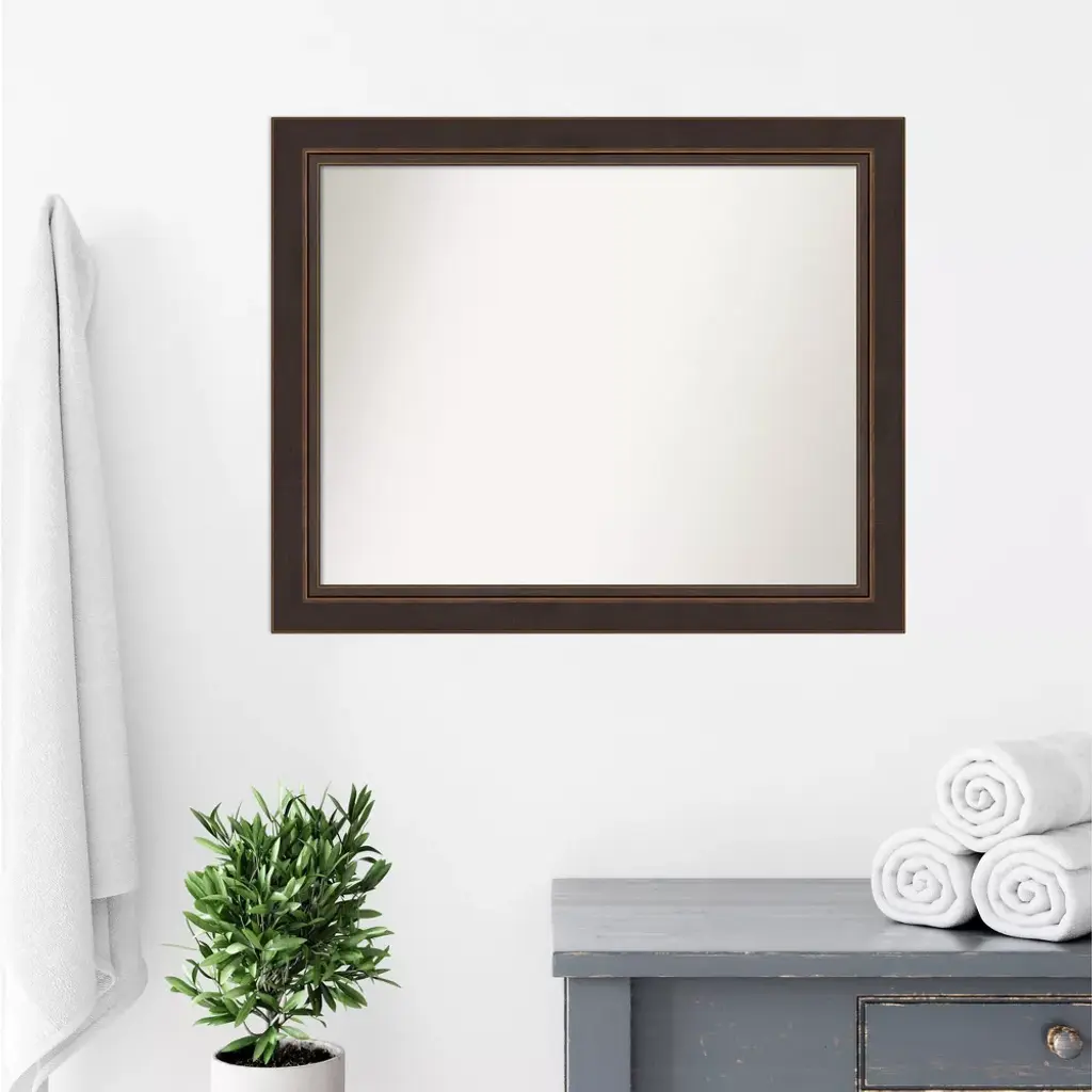 33" X 27" Non-beveled Lara Wood Bathroom Wall Mirror Bronze - Amanti Art