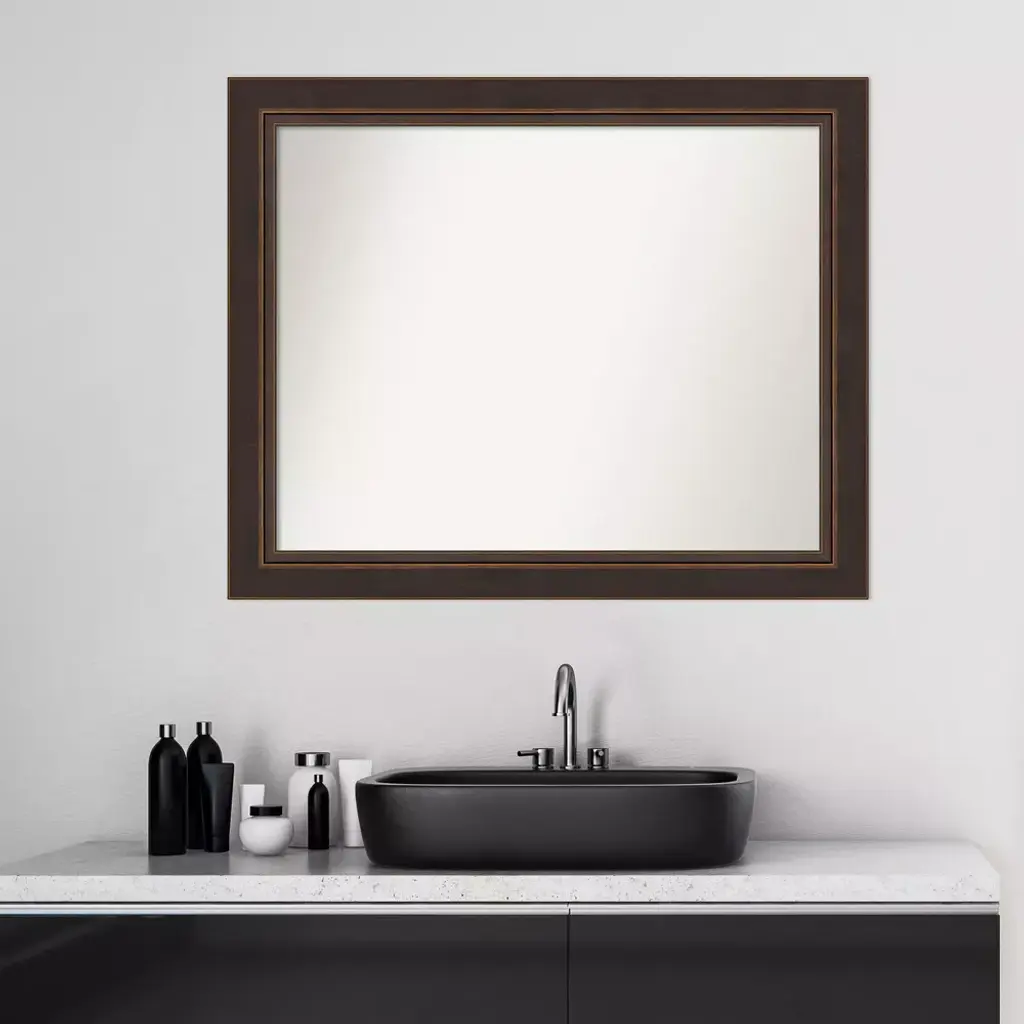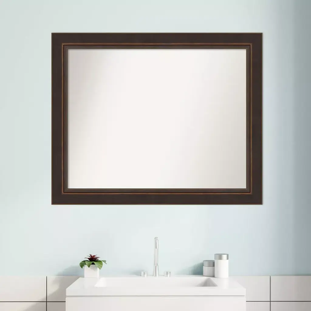 Give your bathroom the finishing touch with this 100% real wood Non-Beveled Wall Mirror framed with the Lara Bronze frame. Individually made using traditional custom framing techniques, it has the quality you would expect from your local frame shop. It holds its value with premium finishing that can be appreciated up close. Because of our attention to detail and focus on artistry, architects, interior designers, and homeowners alike choose this mirror to create beautiful living spaces.