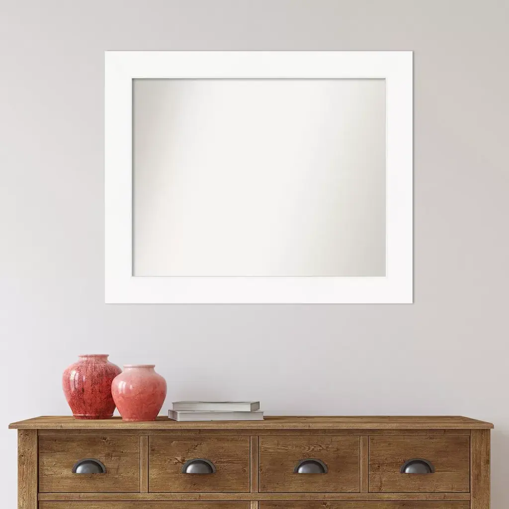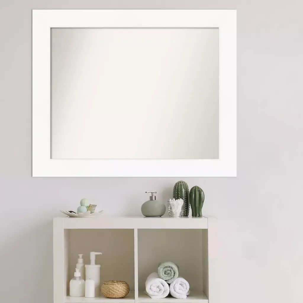 Give your bathroom the finishing touch with this Non-Beveled Wall Mirror framed with the Cabinet White frame. Individually made using traditional custom framing techniques, it has the quality you would expect from your local frame shop. It holds its value with premium finishing that can be appreciated up close. Because of our attention to detail and focus on artistry, architects, interior designers, and homeowners alike choose this mirror to create beautiful living spaces.