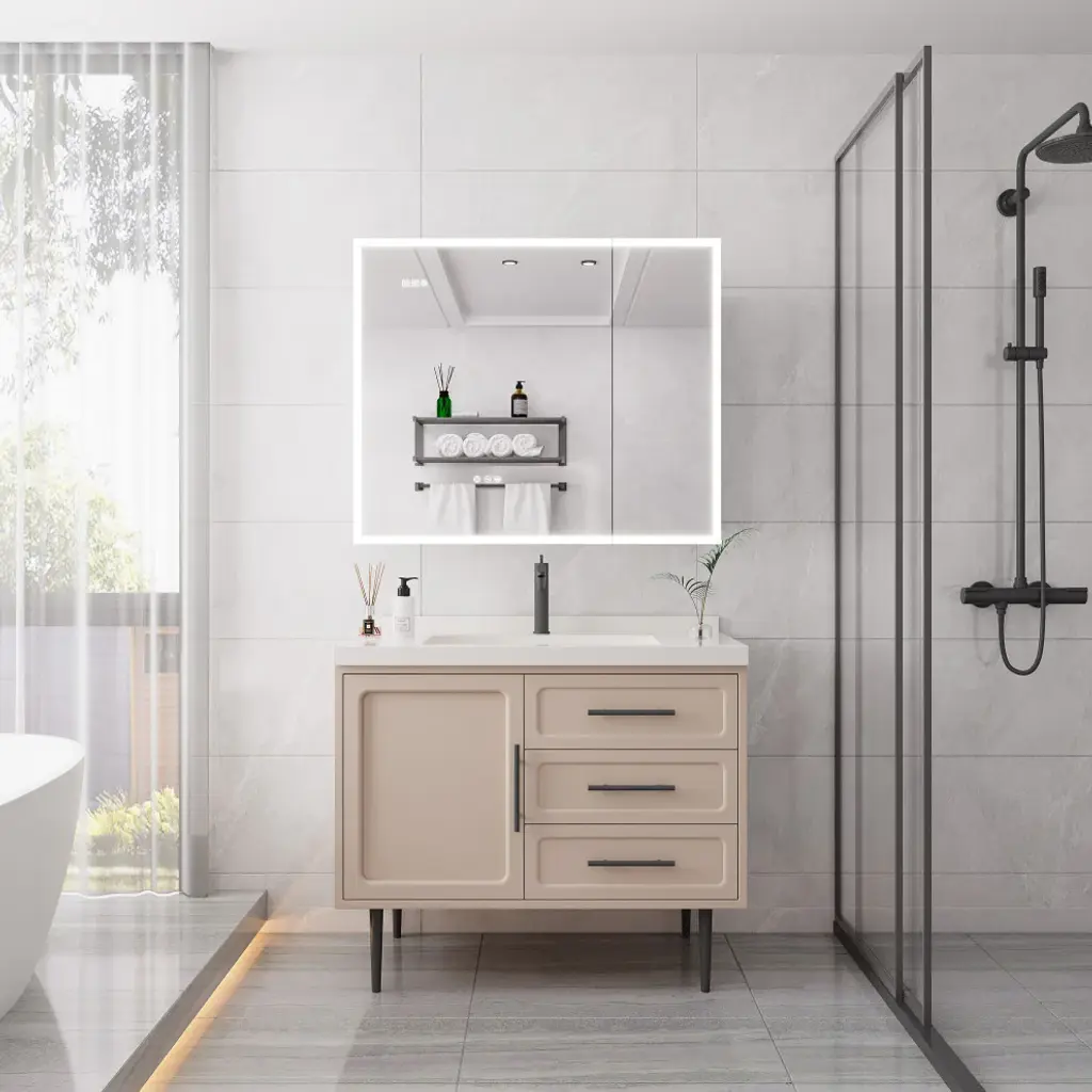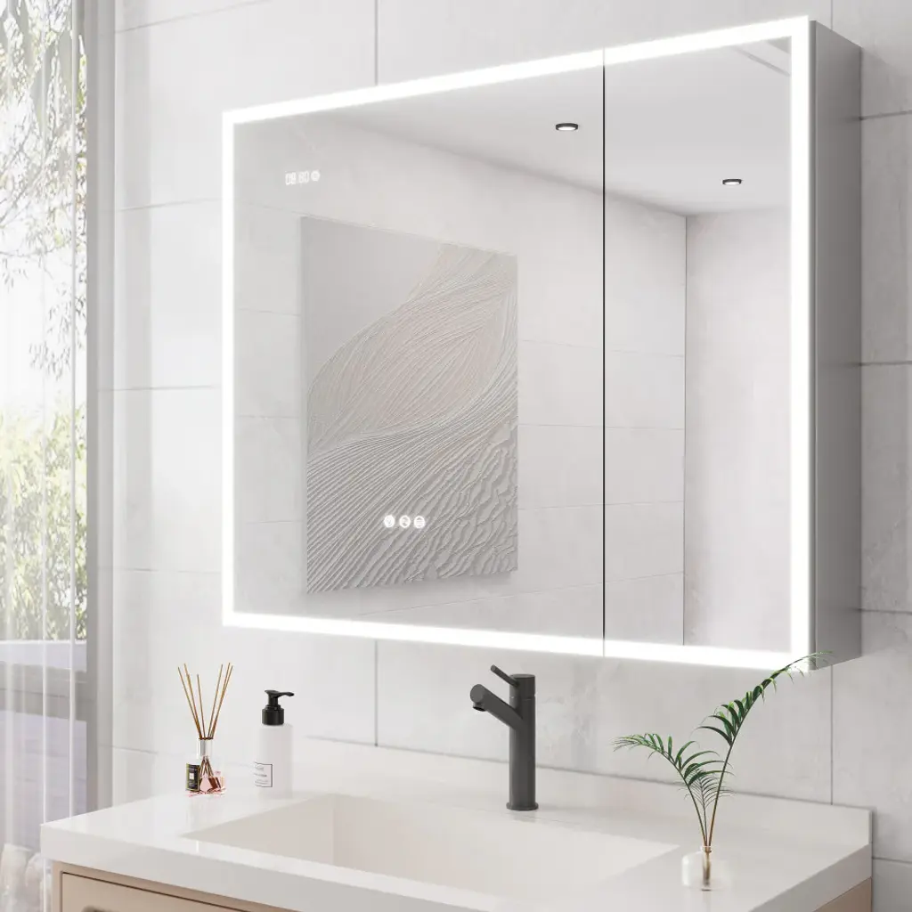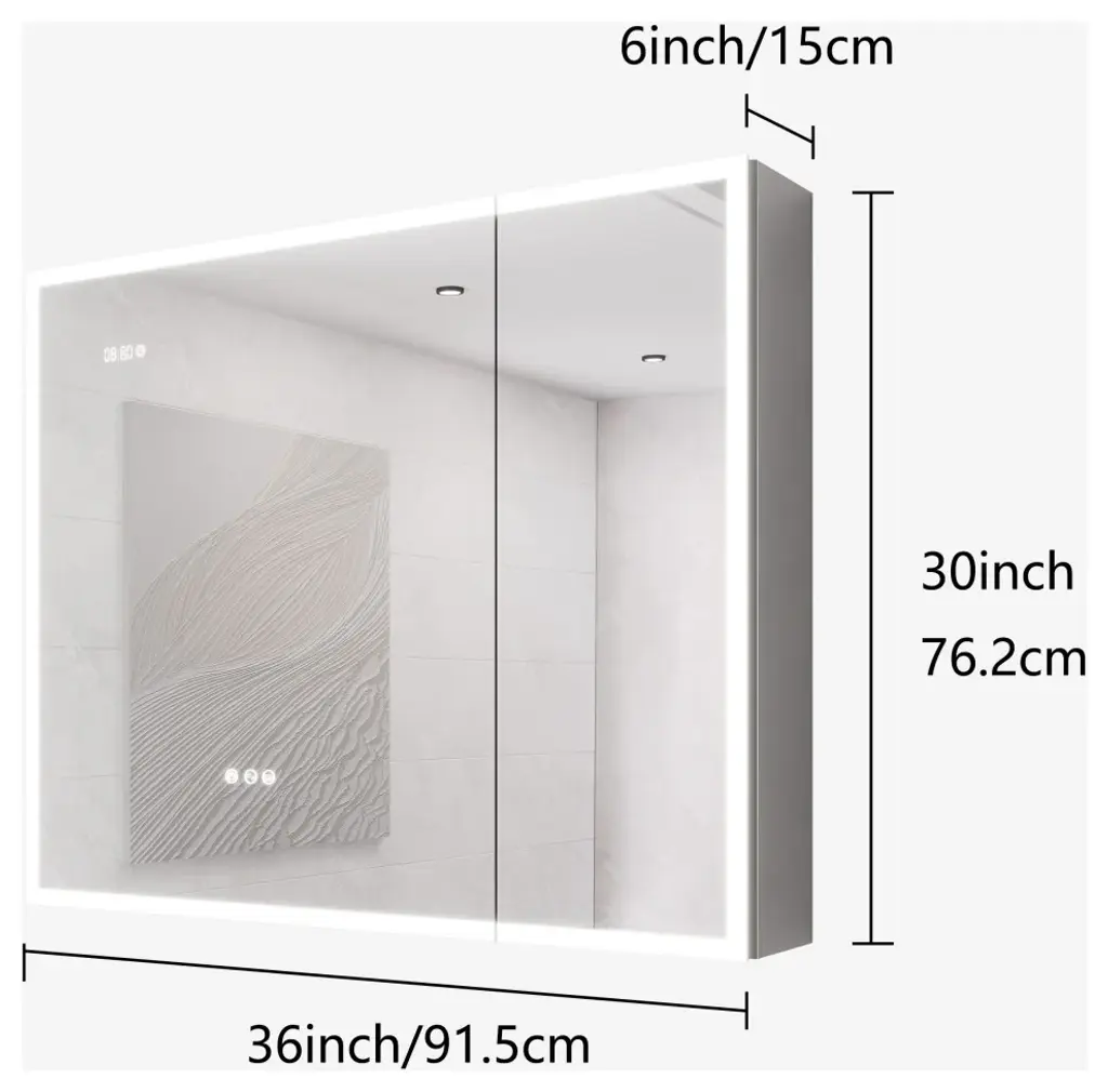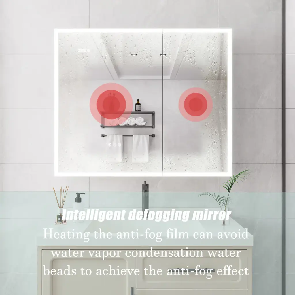 This surface mount medicine cabinet provides essential storage without sacrificing square footage. Perfect for the bathroom that"™s a bit short on space. Perfect for bathrooms that are a bit small. You can install it over the sink, next to the bathtub, or anywhere else. The mirror frame is made from aluminum alloy material, which is corrosion-resistant. You don''t have to worry about the stability of the structure. There are three touch switches for this cabinet, which control the main light, the anti-fog function respectively, the brightness adjustment, and the color temperature adjustment of the lighting. The independent control function allows users to know how to use it easily. An even mix of classic and contemporary elements, this clean-lined medicine cabinet lets you tuck away items in style.1.This surface mount medicine cabinet provides essential storage without sacrificing square footage. 2.Double door double-sided mirror door, one circle of mirror door with regular sanding (left and right doors, large and small doors).3.The mirror frame is made from aluminum alloy material, which is corrosion-resistant. You don''t have to worry about the stability of the structure.4.It is equipped with a three button Touch switch to control the main light and anti-fog film and adjust the light+color temperature, 3-color temperature, dimmable led with a long press to adjust the brightness. A lighted medicine cabinet can adjust the brightness from dark to bright according to your preference.5.This medicine cabinet with reasonable shelves to fully maximize storage space and let your bathroom and other scenarios be organized and clean.6.A bathroom medicine cabinet with a mirror provides uniform and optimal bright lighting, which can eliminate harsh shadows and hot spots when you are shaving, brushing your teeth, or putting on makeup.7.An even mix of classic and contemporary elements, this clean-lined medicine cabinet lets you tuck away items in style.8.The hinge is designed to slowly open and close, providing safety and care for you.