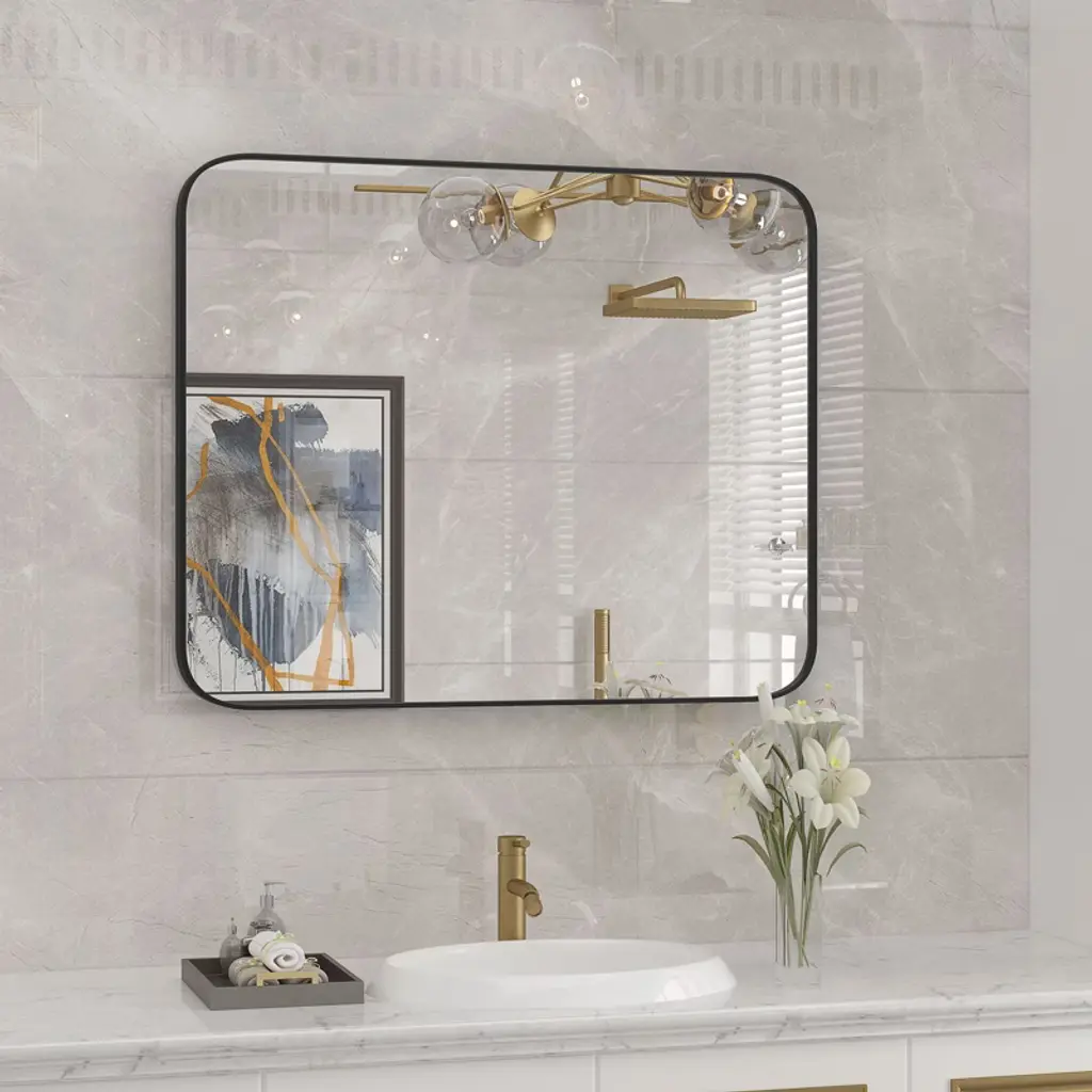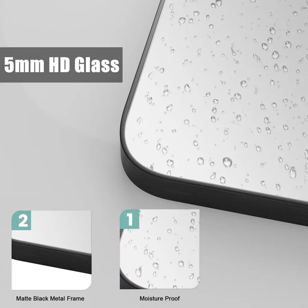 Upgrade your bathroom with the Wall Bathroom Mirror, a blend of style and practicality. Its bold rectangular shape and matte black frame elevate any space, whether hung horizontally above sinks or vertically in entryways for a striking accent. Designed for humid environments, the mirror resists moisture buildup and stays securely mounted. The shatter-safe construction ensures peace of mind, even in busy households. Wipe away splashes or steam effortlessly for a spotless finish every time. Use the included brackets and screws to mount it in minutes. The lightweight yet sturdy build fits seamlessly into bathrooms, dressing rooms, or hallways, adapting to your layout needs. The high-definition surface delivers crisp, true-to-life reflections, making daily routines like shaving or makeup application effortless. Pair it with sconces or overhead lighting to enhance visibility and ambiance.