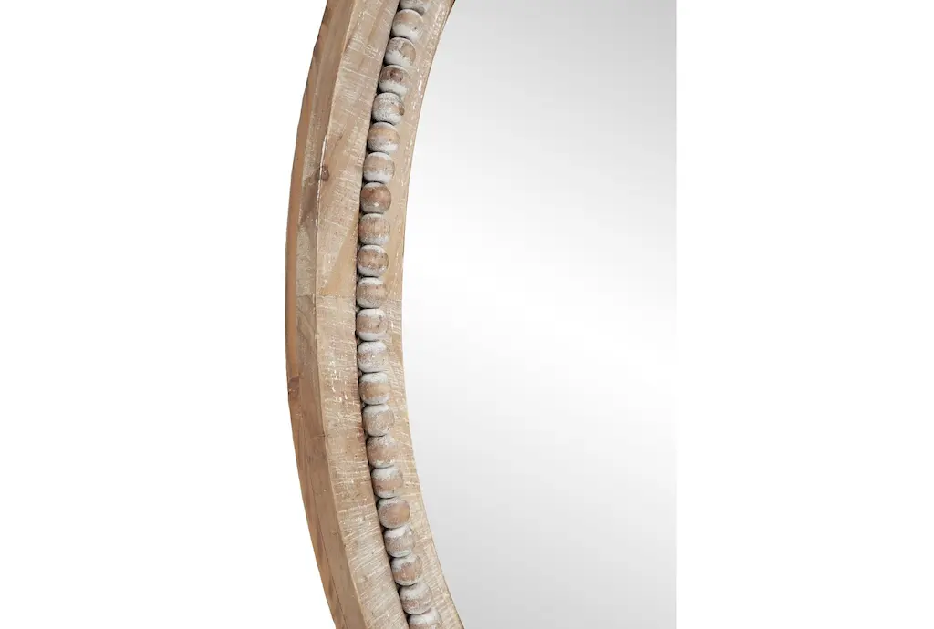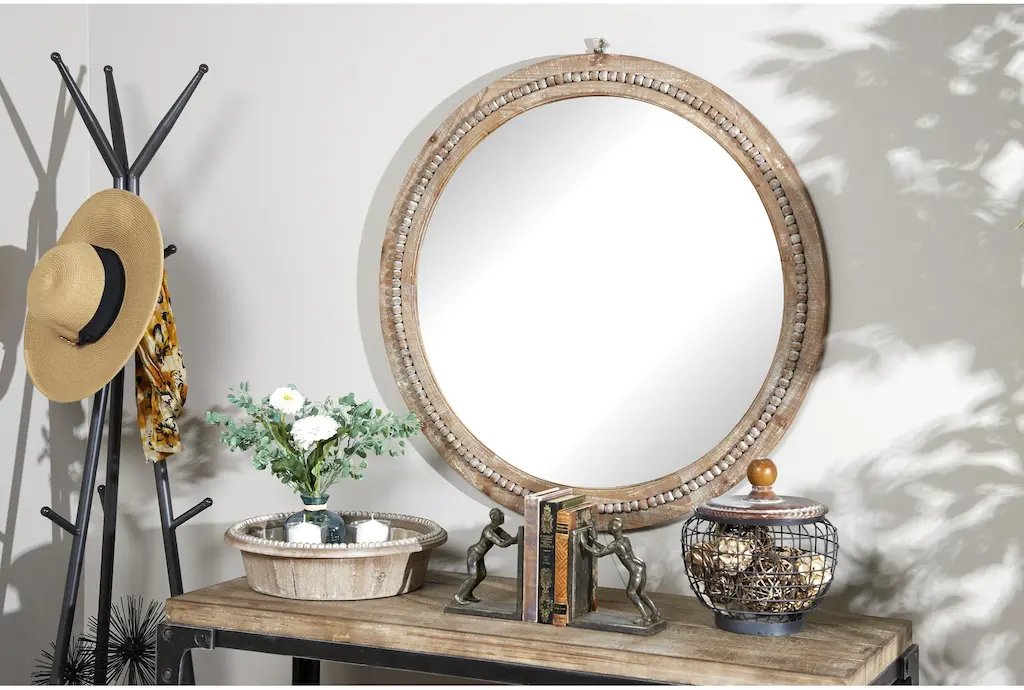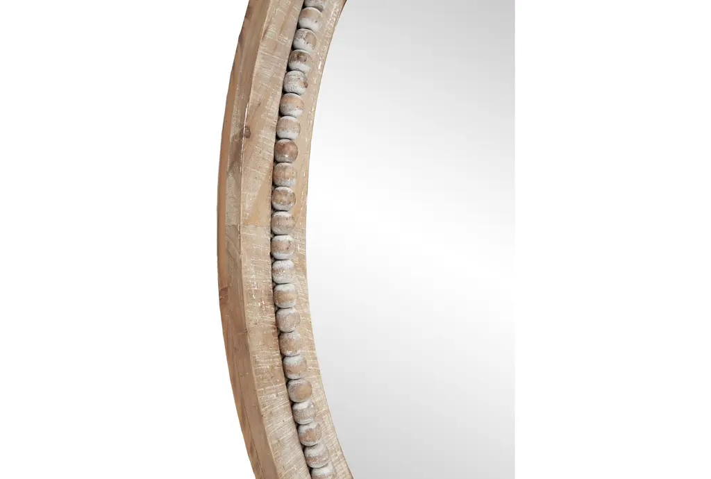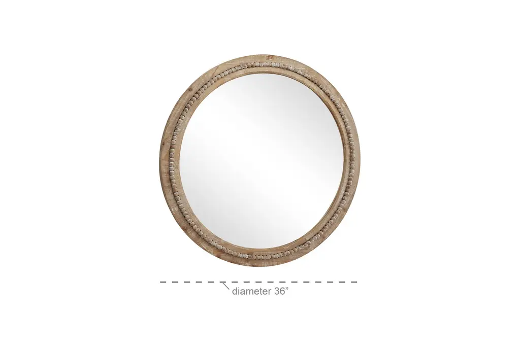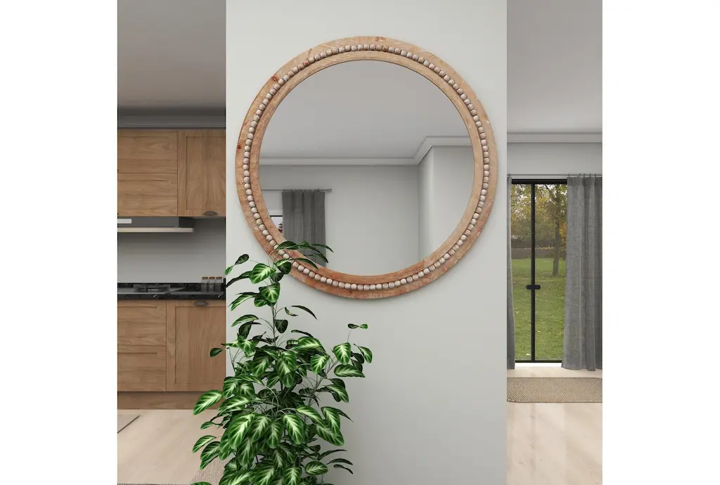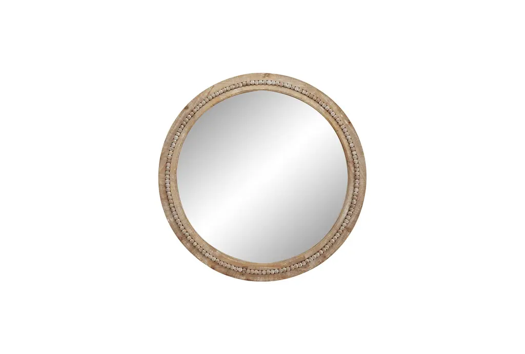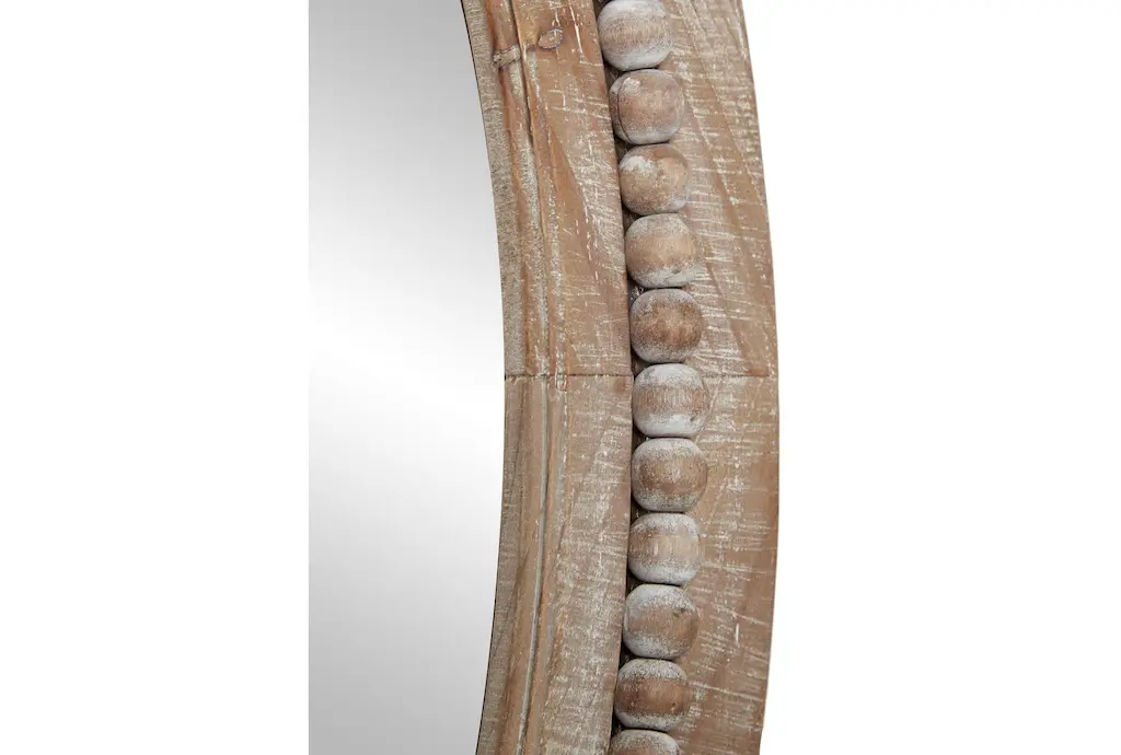 36x36 Light Brown Wood Beaded Frame Wall Mirror With Distressing | Curved
