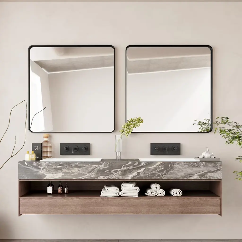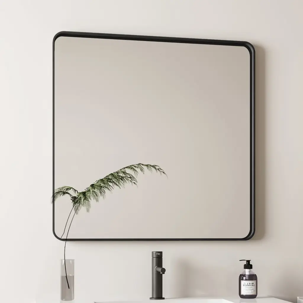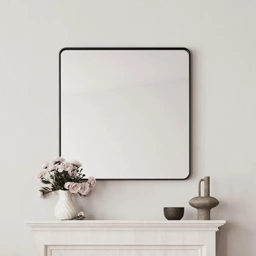 36"x36" Wall Mounted Black Square Mirror Metal Framed Mirror