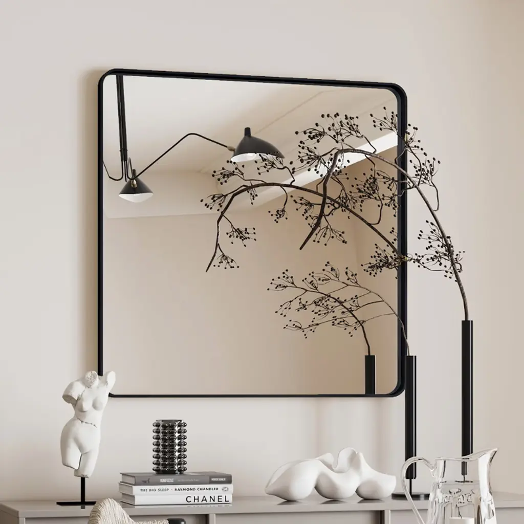 Wall Mirror 36x36 Inch Square Mirror Metal Framed Mirror Square Vanity Mirror Dressing Mirror, for Bathroom, Living Room, Bedroom Wall Decor, Black