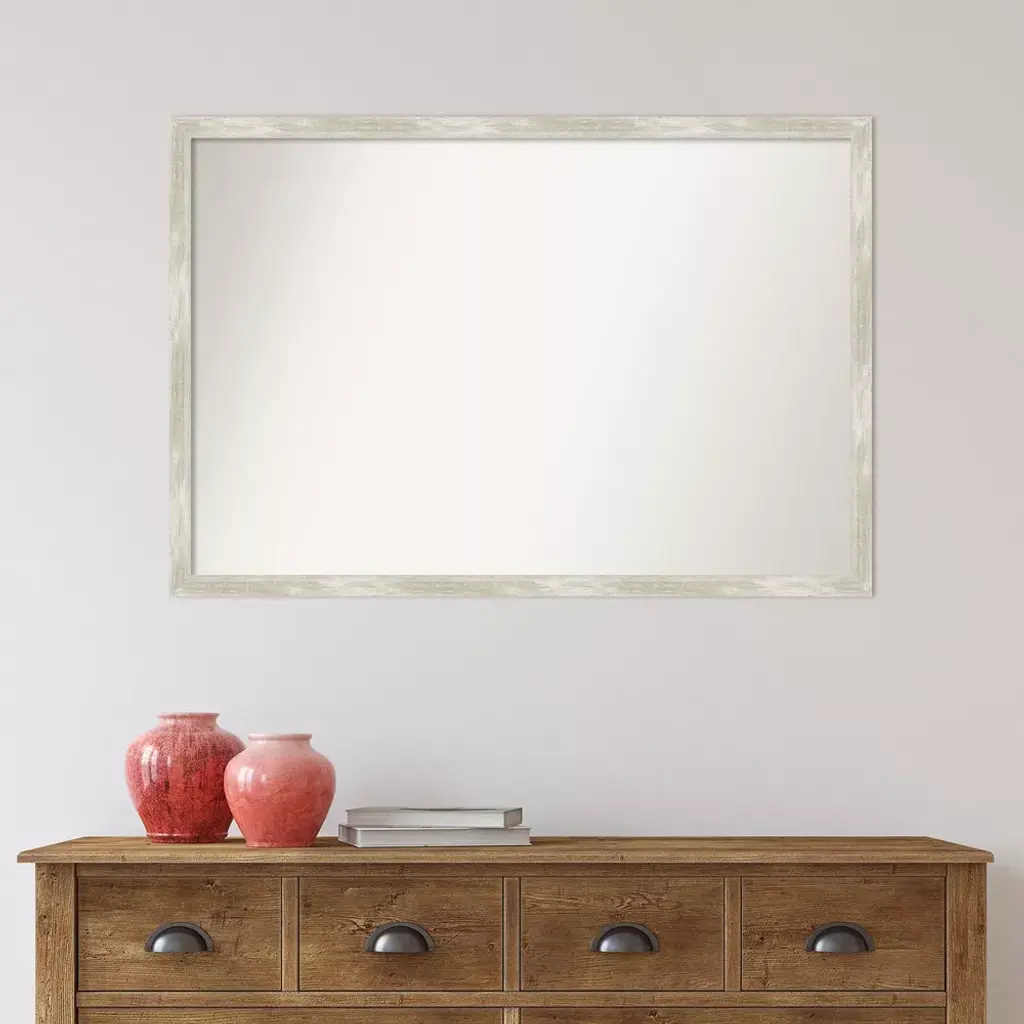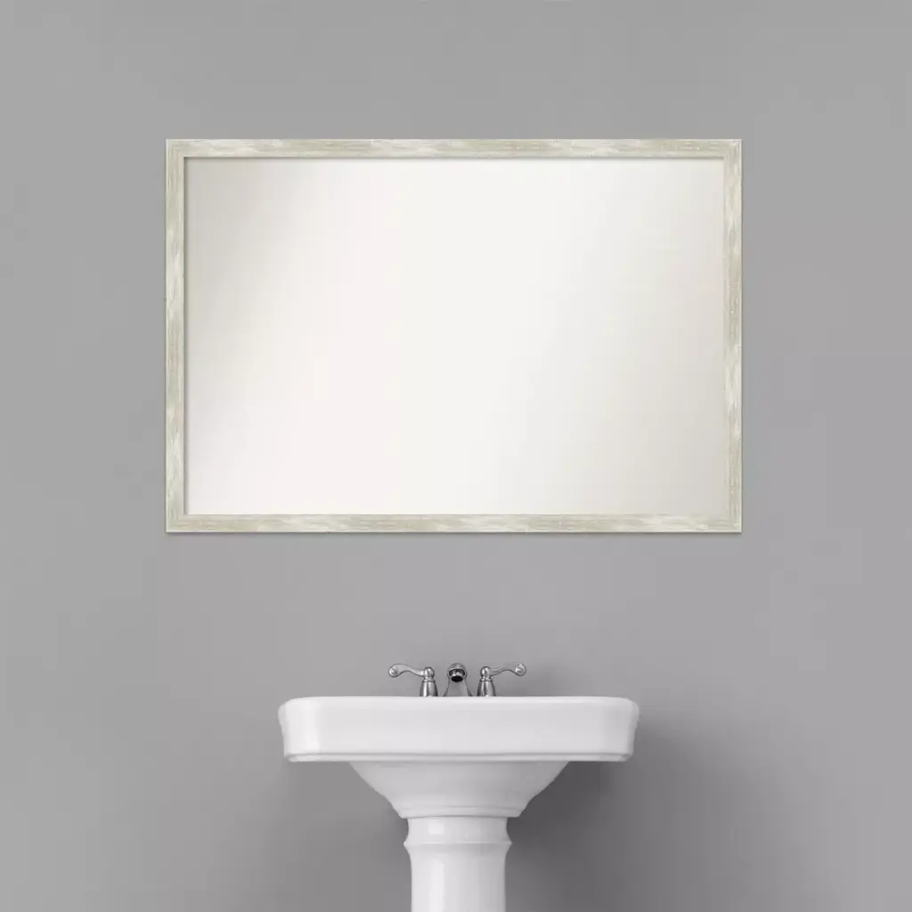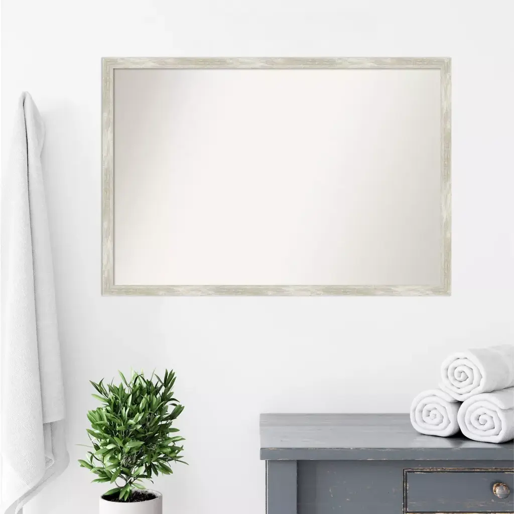 38" X 26" Non-beveled Crackled Narrow Bathroom Wall Mirror Metallic Silver - Amanti Art: Polystyrene Frame, Includes Mounting Hardware
