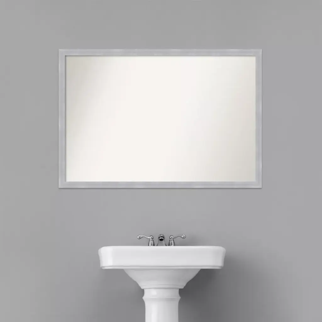 Give your bathroom the finishing touch with this Non-Beveled Wall Mirror framed with the Grace Brushed Nickel Narrow frame. Individually made using traditional custom framing techniques, it has the quality you would expect from your local frame shop. It holds its value with premium finishing that can be appreciated up close. Because of our attention to detail and focus on artistry, architects, interior designers, and homeowners alike choose this mirror to create beautiful living spaces.