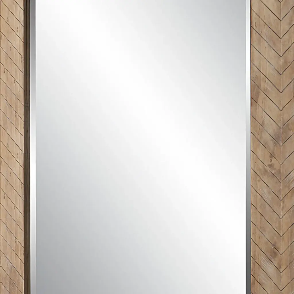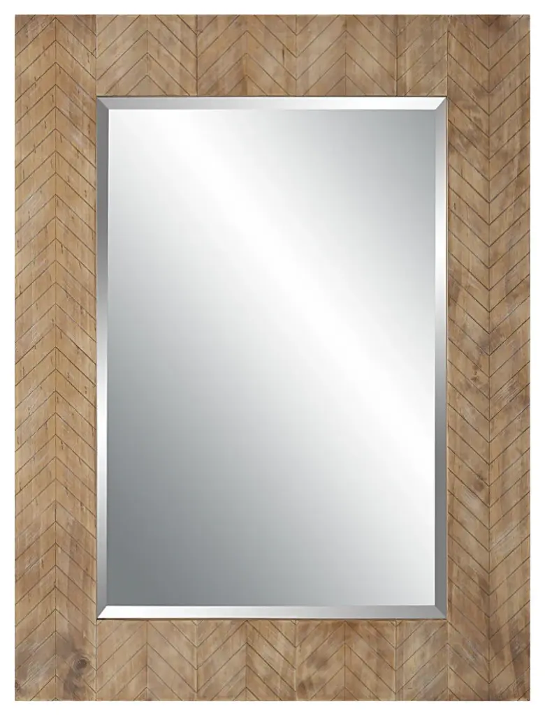 39 Inch Wood Frame Wall Mirror, Chevron Design, BrownExemplify a transitional elegance in your home with this gorgeous wall mirror that brings both personality and function to any bare wall. Designed with a sleek chevron pattern, it has been finished in a rich natural brown tone and has a smooth 1 inch bevel. It can be hung either vertically or horizontally.