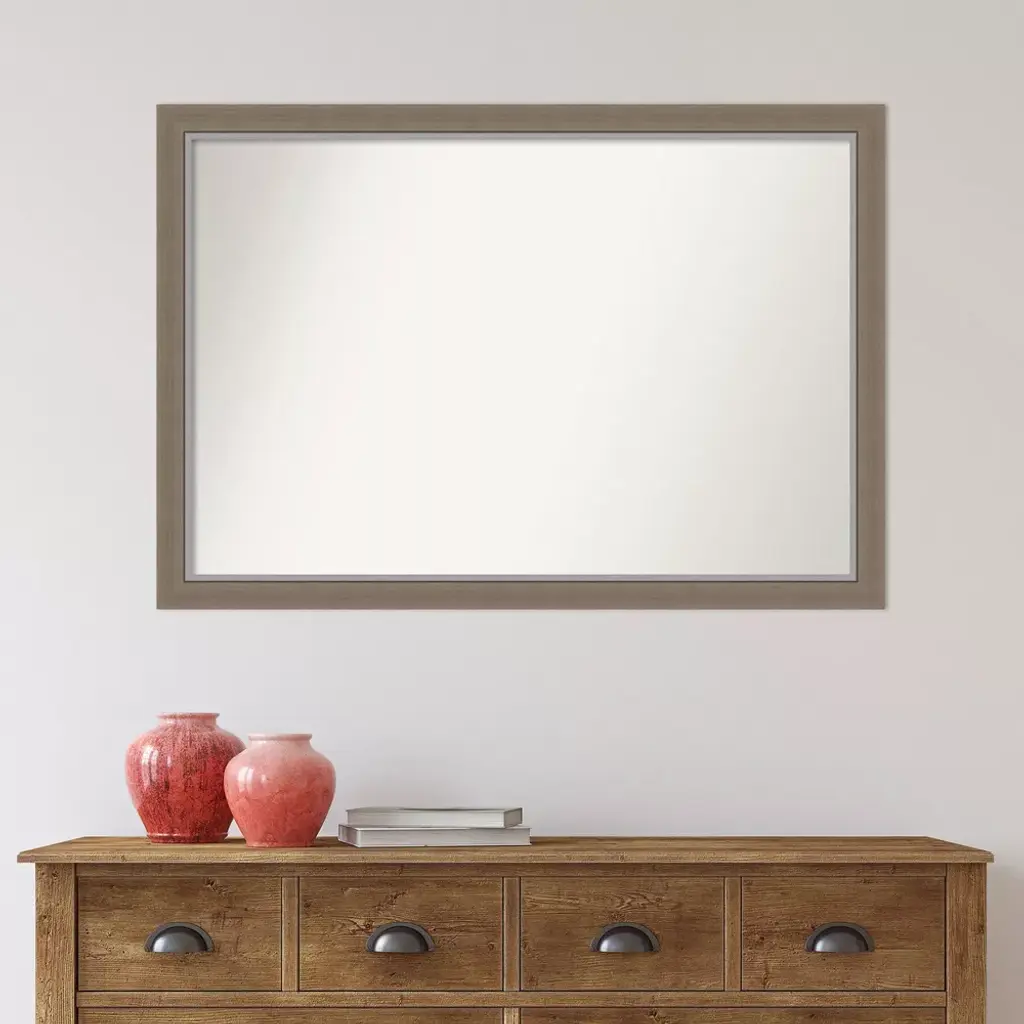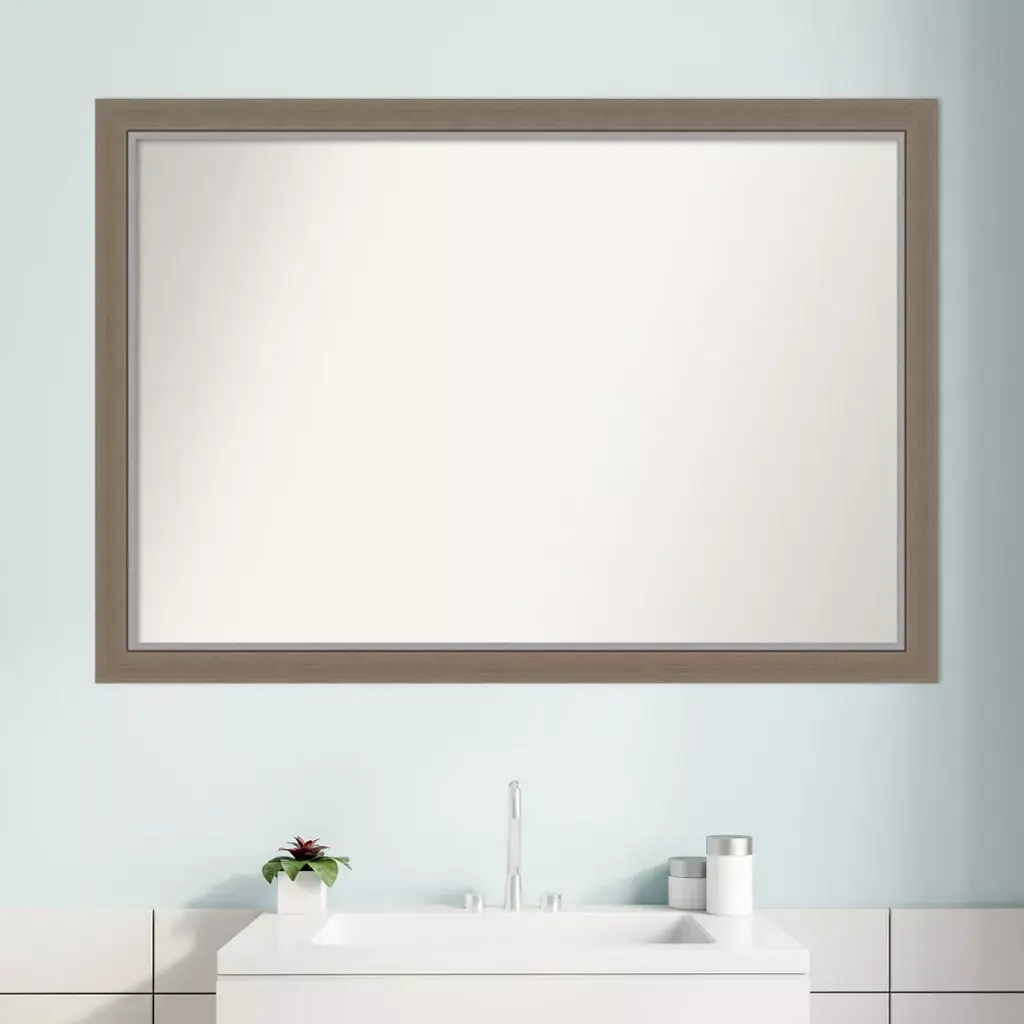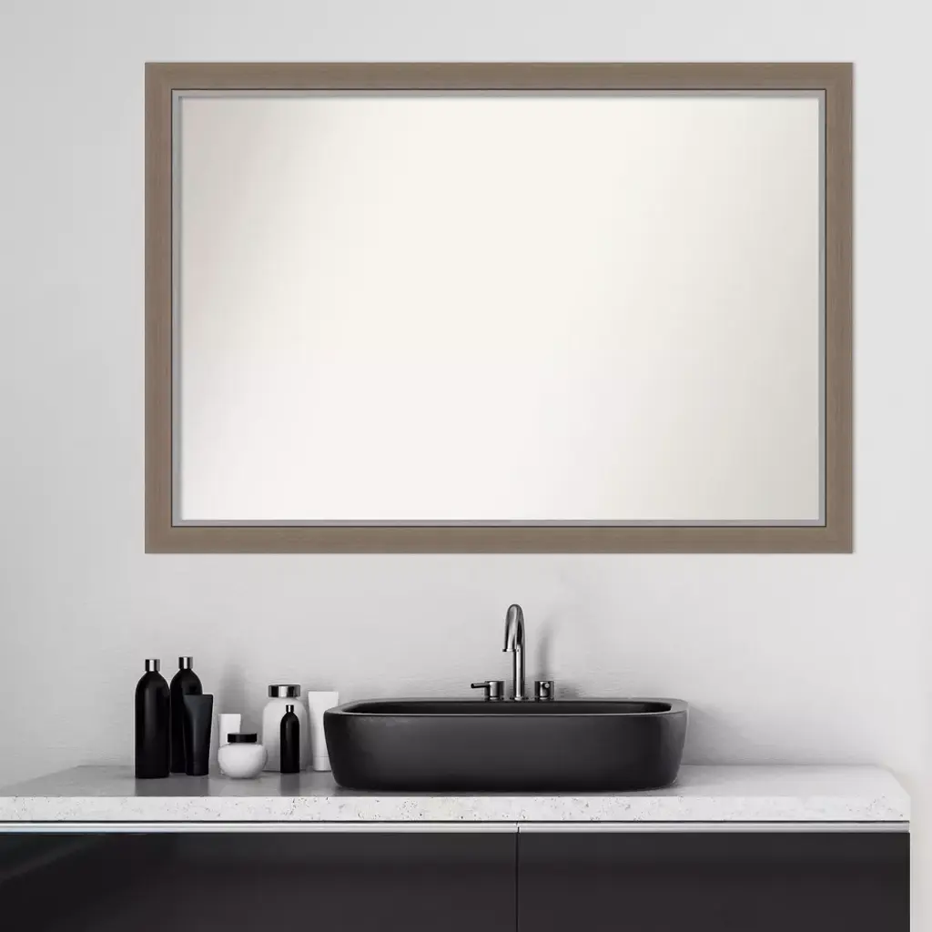 Give your bathroom the finishing touch with this Non-Beveled Wall Mirror framed with the Eva Brown Narrow frame. Individually made using traditional custom framing techniques, it has the quality you would expect from your local frame shop. It holds its value with premium finishing that can be appreciated up close. Because of our attention to detail and focus on artistry, architects, interior designers, and homeowners alike choose this mirror to create beautiful living spaces.