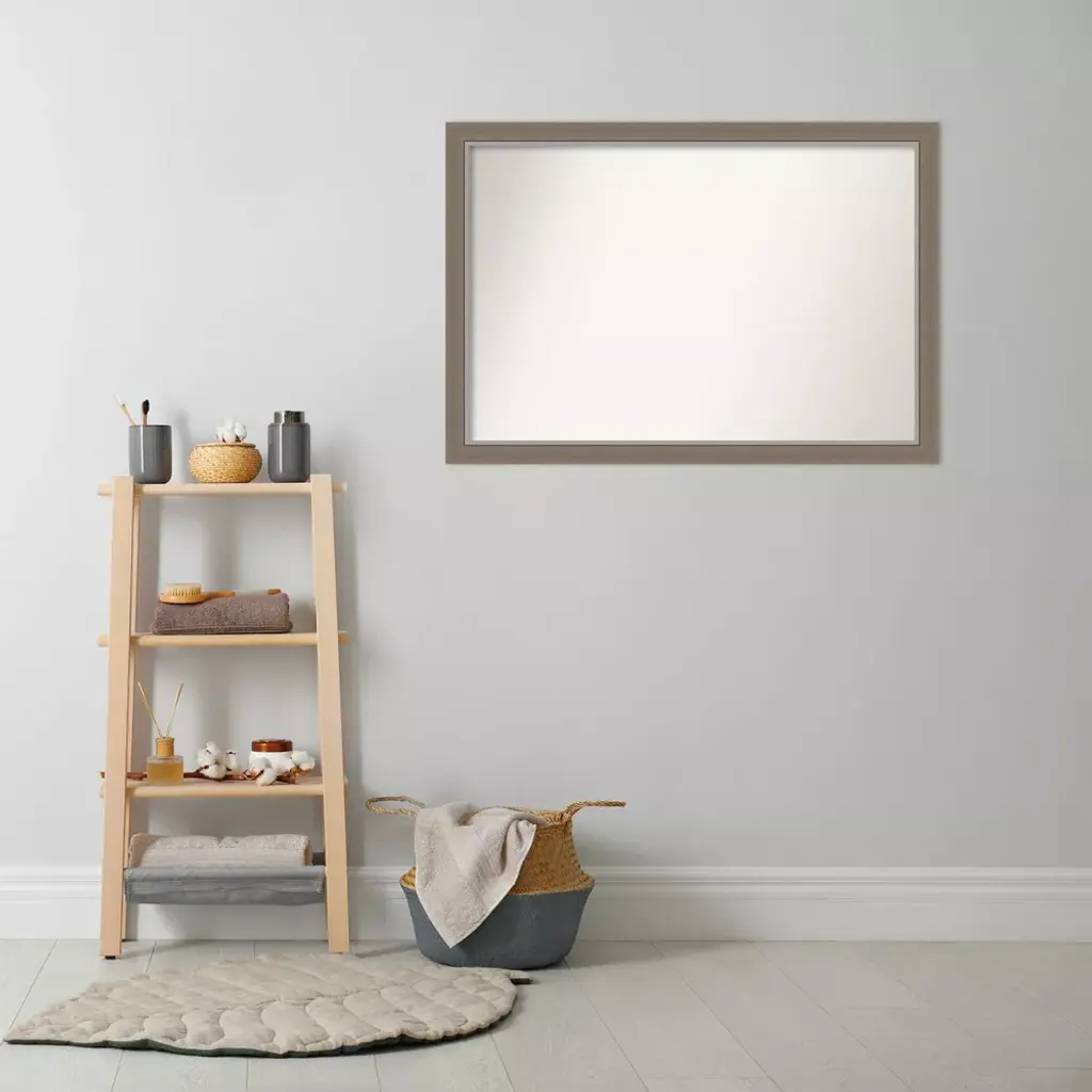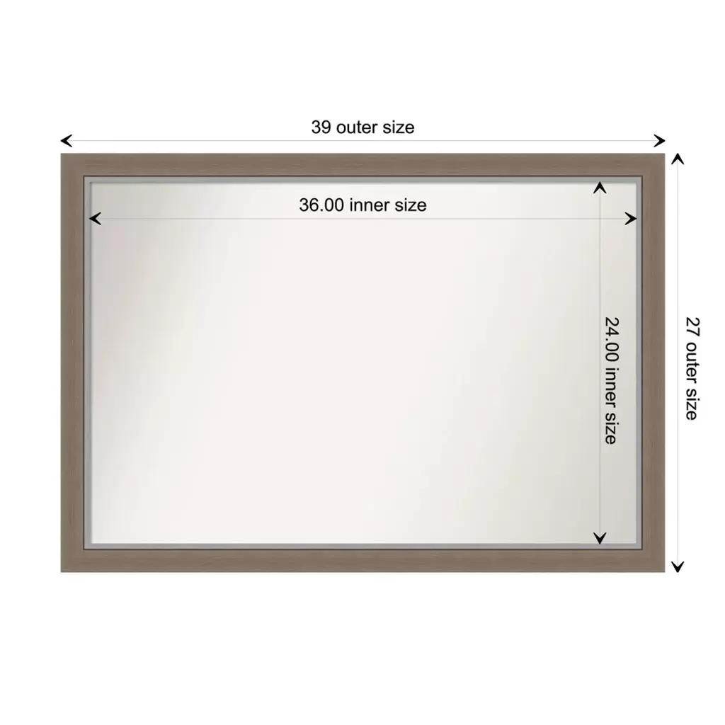 39" X 27" Non-beveled Eva Narrow Bathroom Wall Mirror Brown - Amanti Art: Modern Rectangle, Polystyrene Frame