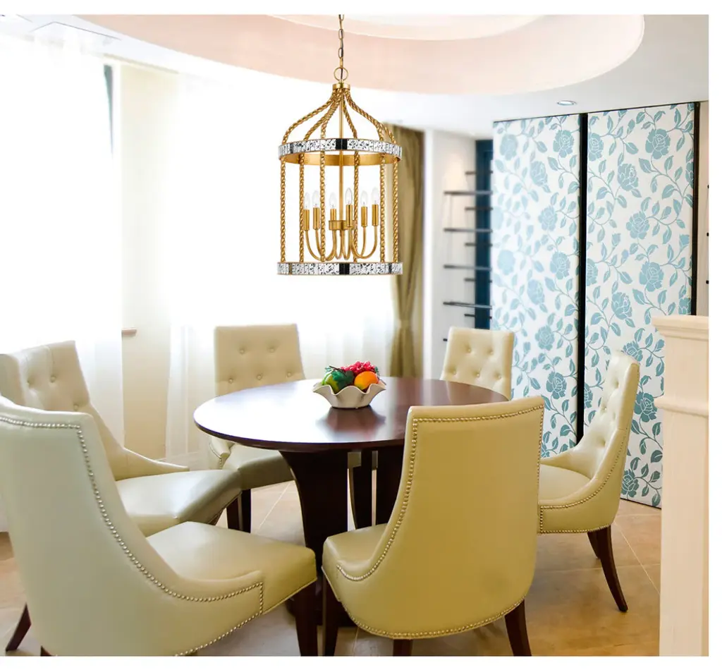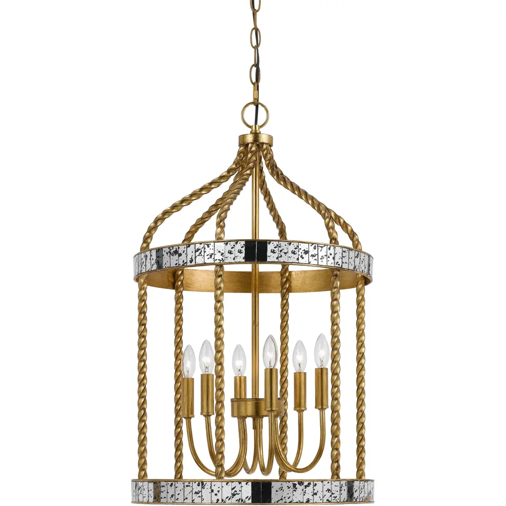 27.5 Inch Tall Metal Pendant in French Gold Antiqued Mirror FinishDurable Metal Construction6 Foot ChainShips In One Cartonbase diameter: 17shade top 1: 0shade bottom 1: 0shade side: 0wattage: 40bulb base: E12shade color: n/aswitch type: Hardwiredlight: 6Light bulb(s) not included