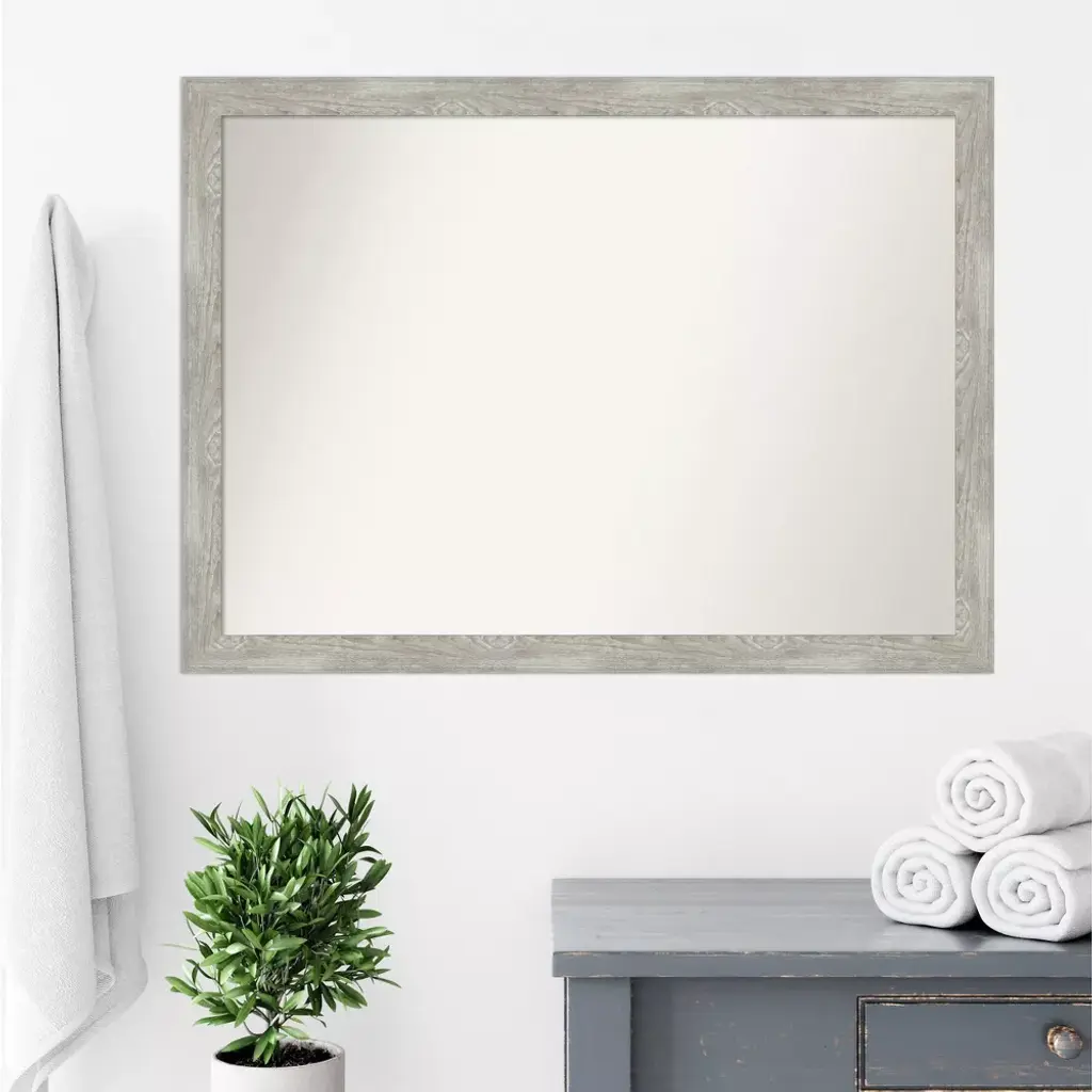 Give your bathroom the finishing touch with this Non-Beveled Wall Mirror framed with the Dove Graywash Narrow frame. Individually made using traditional custom framing techniques, it has the quality you would expect from your local frame shop. It holds its value with premium finishing that can be appreciated up close. Because of our attention to detail and focus on artistry, architects, interior designers, and homeowners alike choose this mirror to create beautiful living spaces.