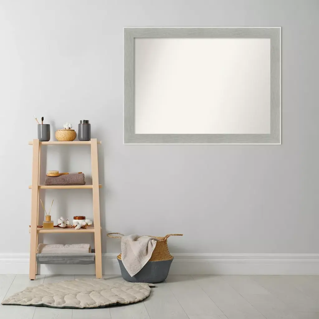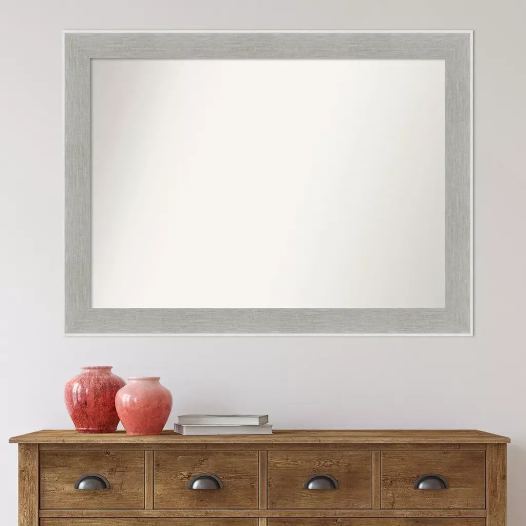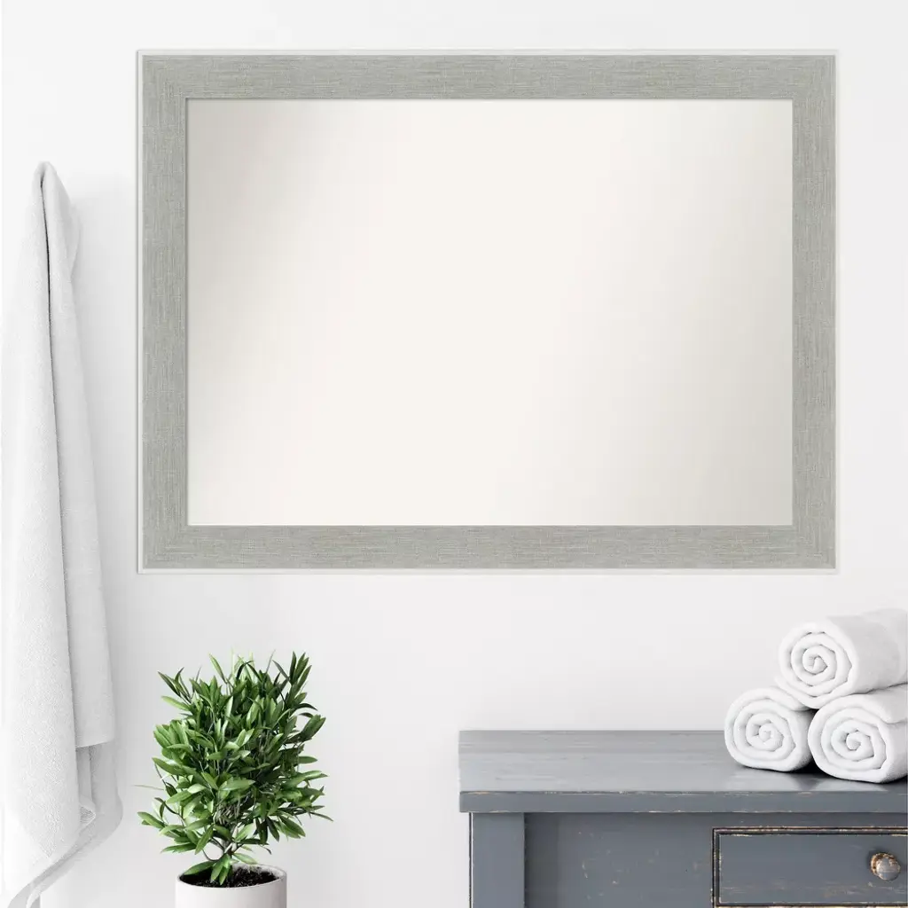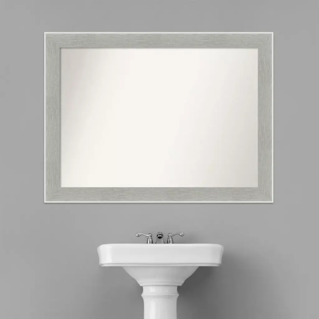 Give your bathroom the finishing touch with this Non-Beveled Wall Mirror framed with the Glam Linen Grey frame. Individually made using traditional custom framing techniques, it has the quality you would expect from your local frame shop. It holds its value with premium finishing that can be appreciated up close. Because of our attention to detail and focus on artistry, architects, interior designers, and homeowners alike choose this mirror to create beautiful living spaces.