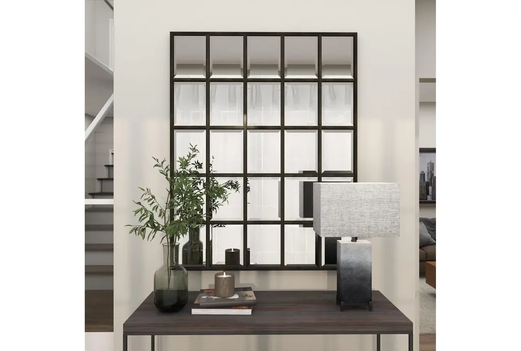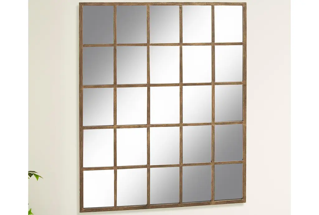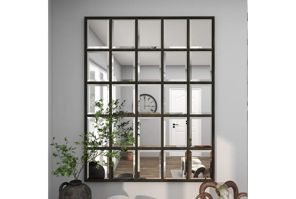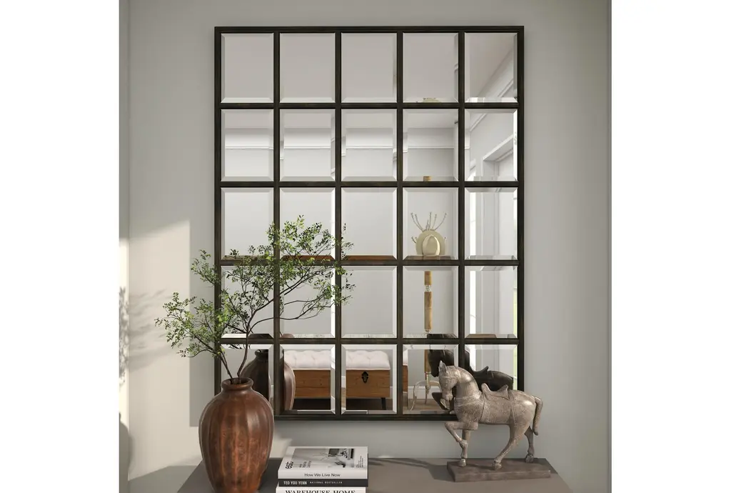 43x64 Brown Metal Window Pane Arch Wall Mirror