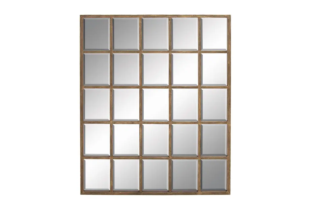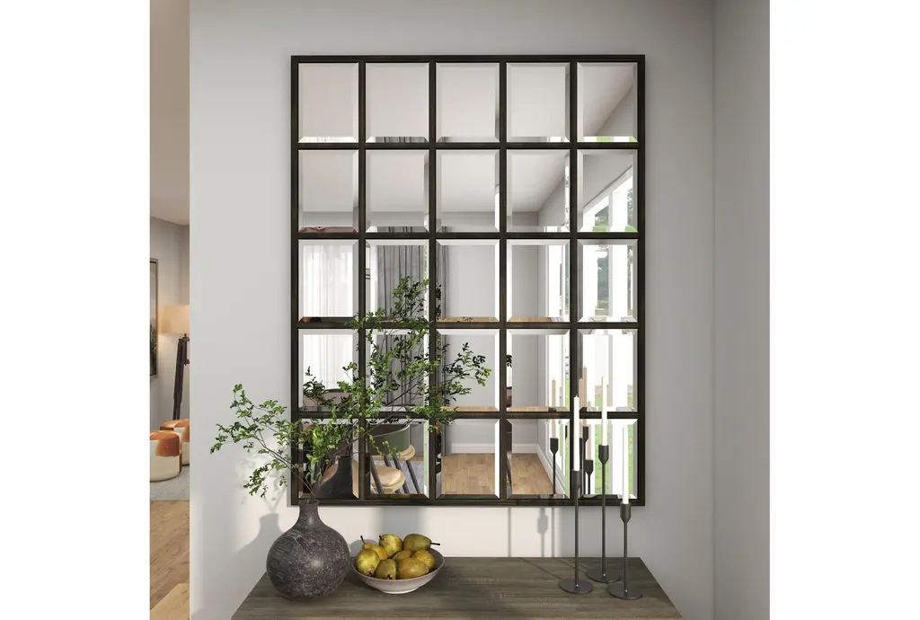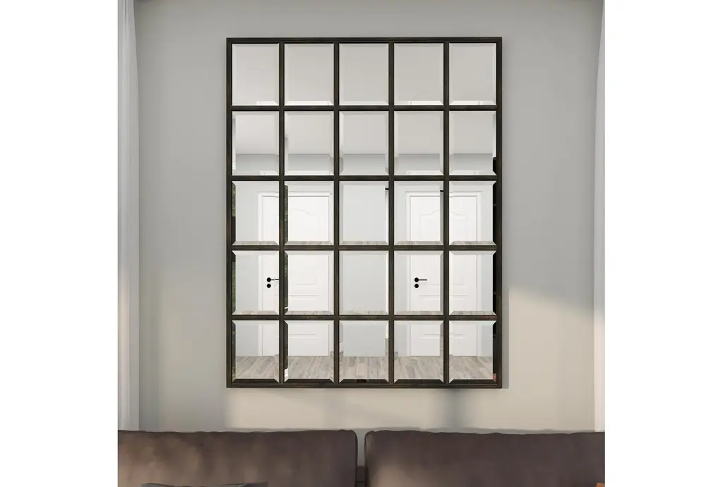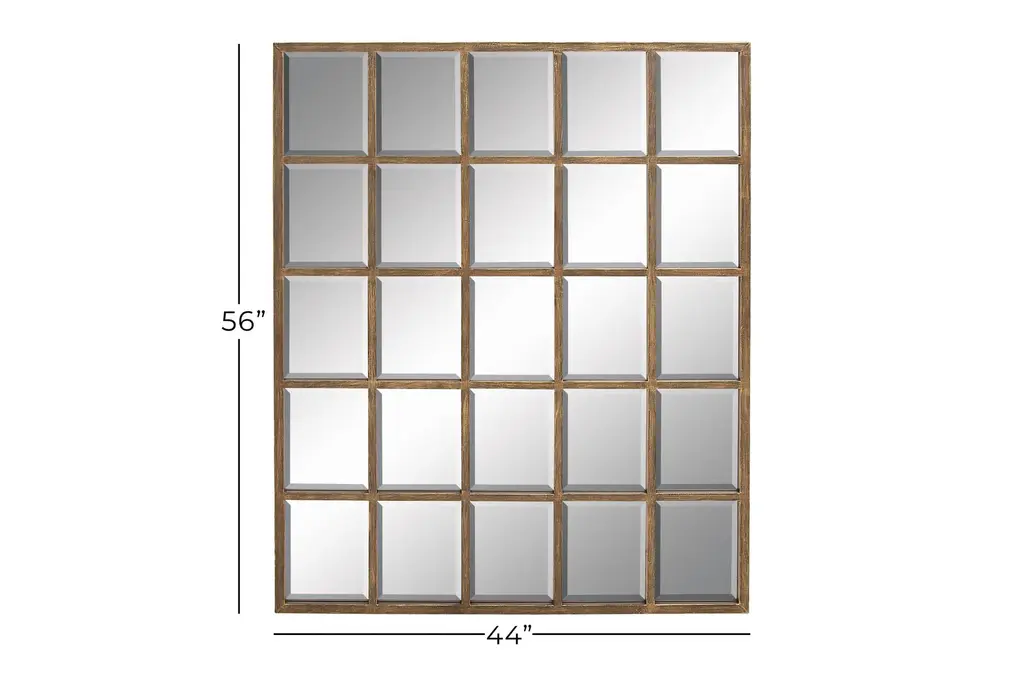 Embrace the perfect blend of traditional and modern design with the 43X64 Brown Metal Window Pane Arch Wall Mirror. This decorative mirror features a distressed brass-colored metal frame, adding a touch of rustic charm to any space. The reflective beveled glass inlays create a stunning visual effect, making it a standout piece in your home decor.