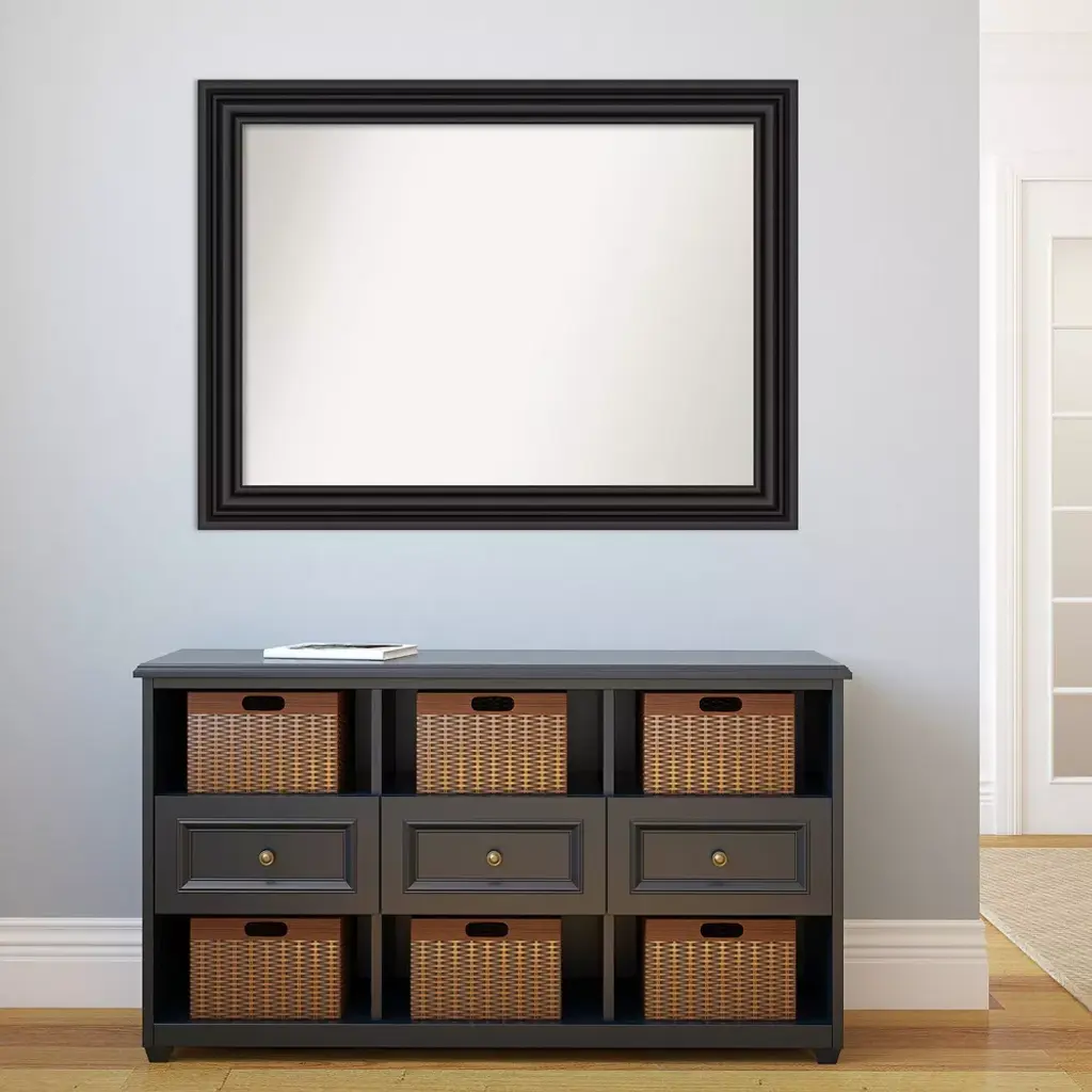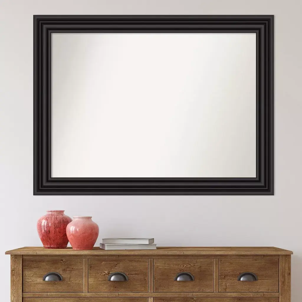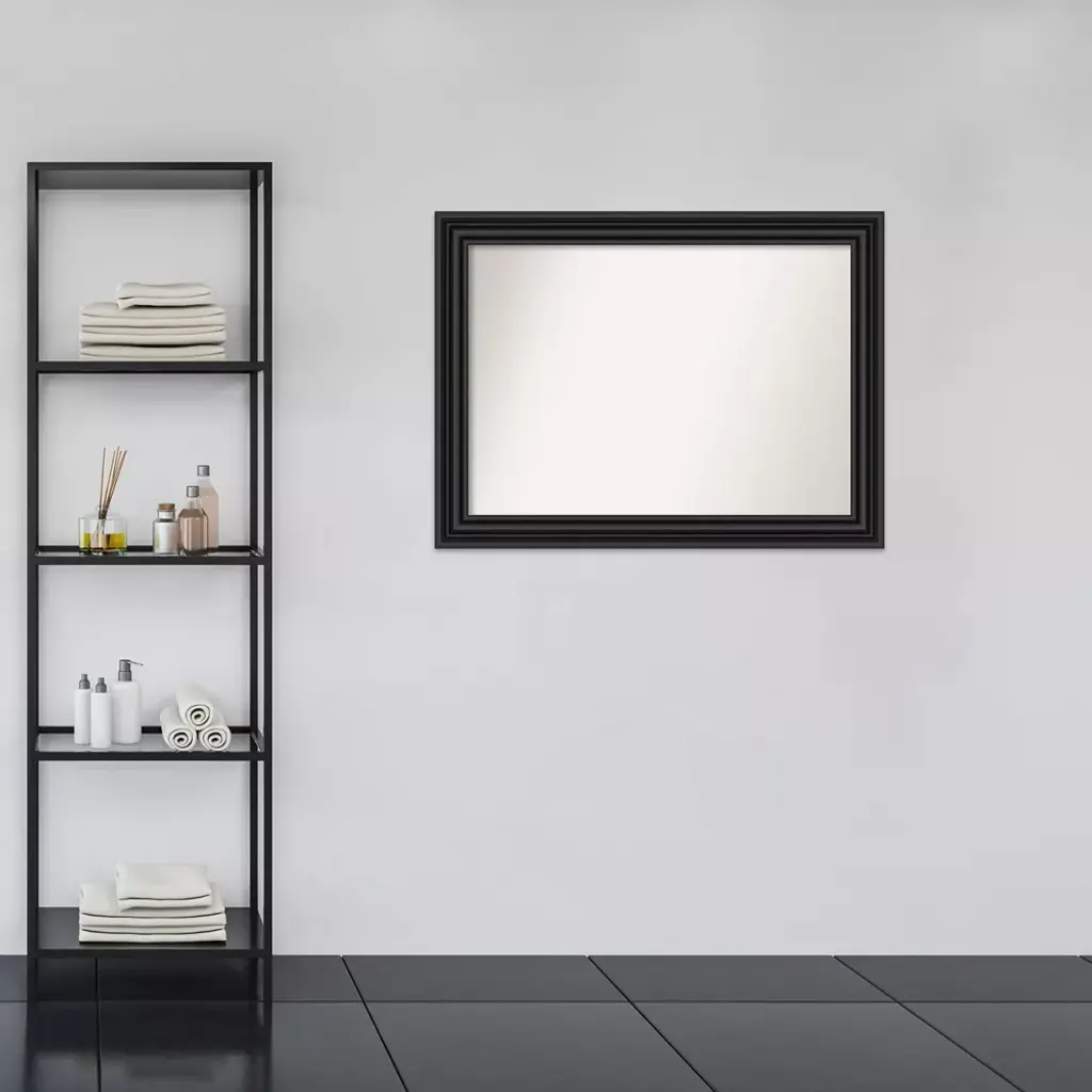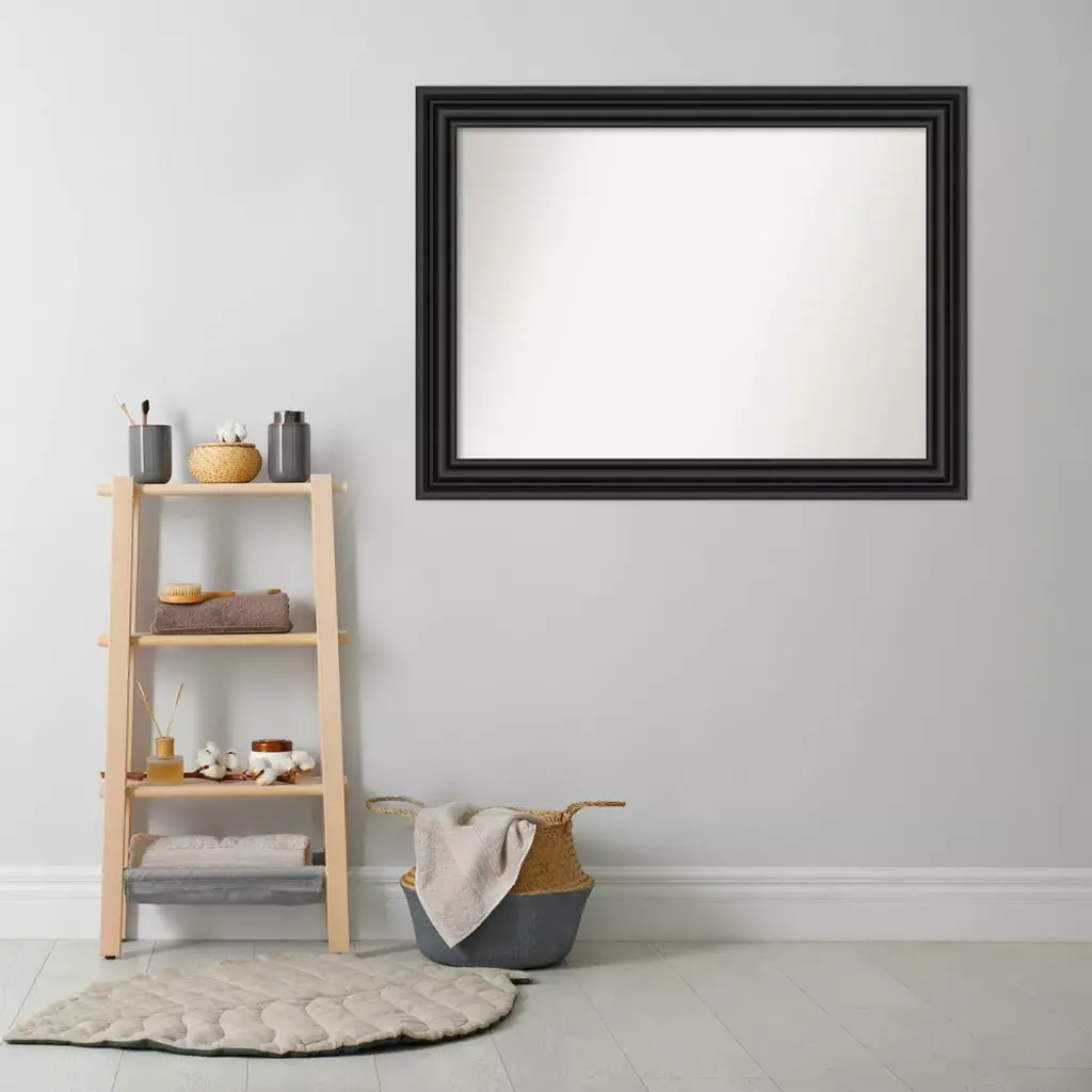 44" X 33" Non-beveled Colonial Bathroom Wall Mirror Black - Amanti Art: Rectangle, Polystyrene Frame, Wall Mount