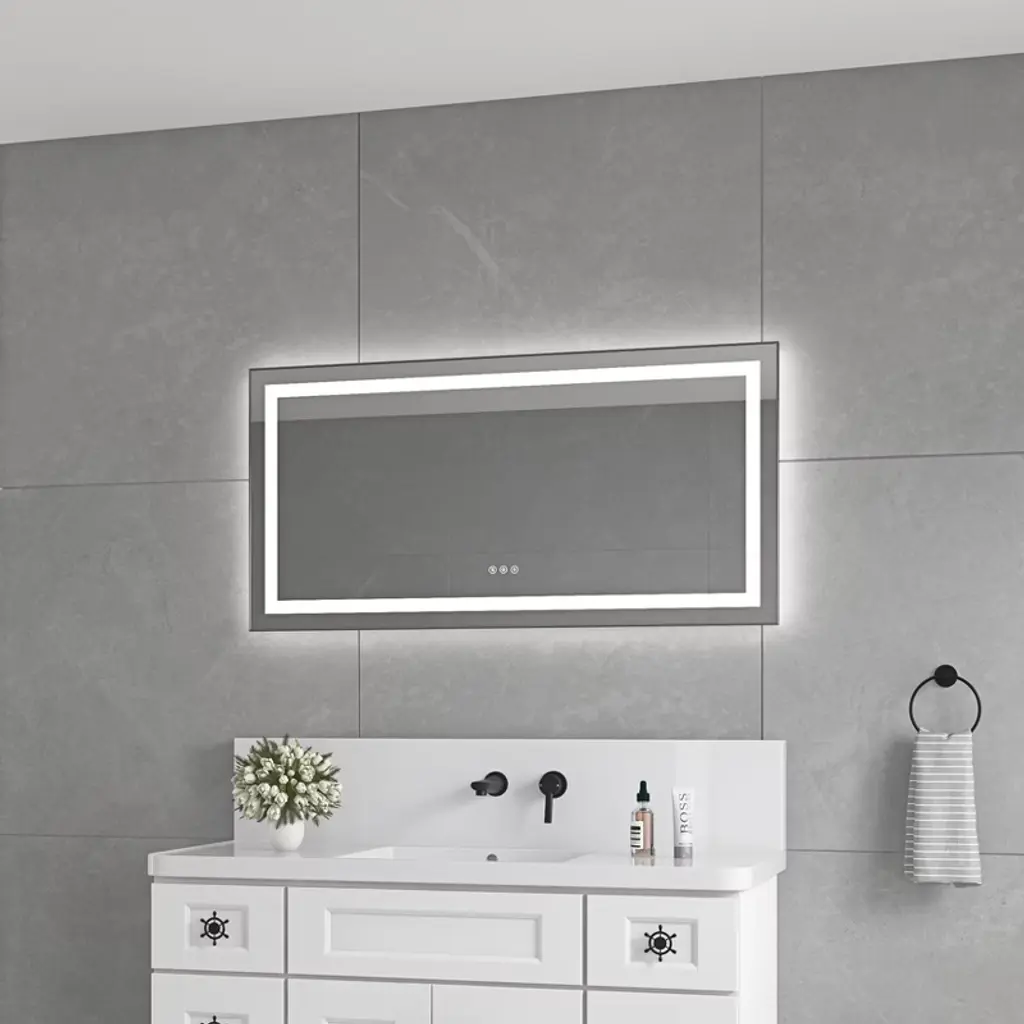 LED bathroom mirror supports 3 color temperatures - warm light, natural light and white light. Short press to switch color temperature, long press to adjust brightness. Meet the lighting needs of different people and is an excellent decoration for the bathroom.The anti-fog function of the bathroom mirror can quickly remove water vapor on the mirror surface, and no need to wipe the mirror after bathing, and can also maintain a clear view.LED bathroom mirror features an aluminum frame, making the mirror more exquisite and durable. The high-definition mirror surface ensures clear, undistorted reflections.LED bathroom mirrors can enhance a better lighting atmosphere for your space, but are not recommended to be used as independent lighting, please use them in combination with other lighting tools.