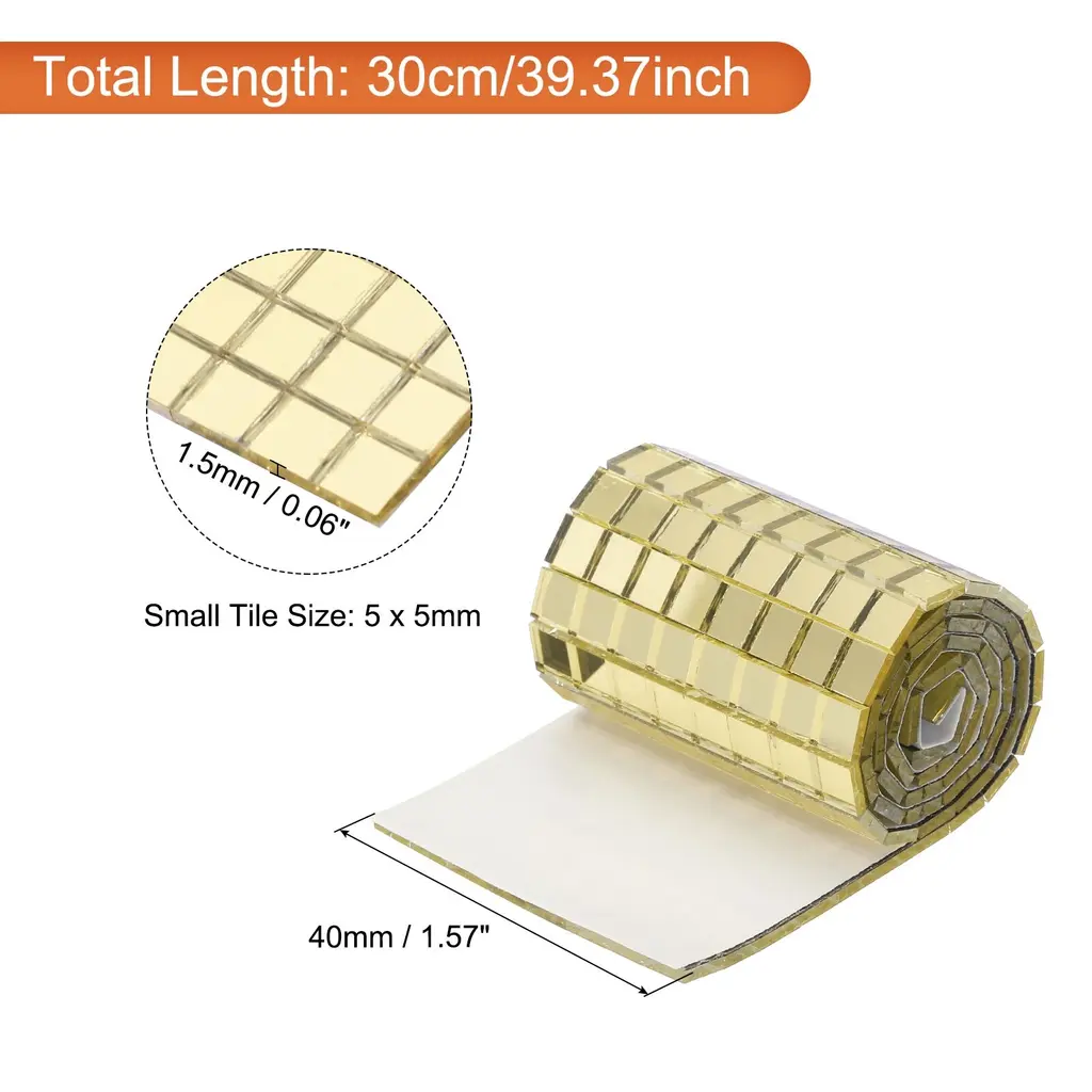 What is this?These mirror squares can be used in various applications, such as home decor, parties, weddings, clubs, 3D background walls, and stage performances.What will I get?Color: SilverMaterial: GlassSmall Tile Size: 5 x 5mm/0.2 x 0.2 inch (L*W)Total Size: 30 x 4cm/11.8 x 1.57 inch (L*W)Thickness: 1.5mm/0.06 inchIn the package of: 1 Set x Mosaic Mirror, 480pcs small tile for 1 setAre there any advantages of the product?Made of glass material, these disco ball tiles are sturdy and long-lasting. They are designed to withstand regular use and applied for multiple events or occasions.The glass mirror surface of these tiles reflects light beautifully, creating enchanting patterns and reflection around the room.How to use it?1. Clean the surface where you want to place it and keep it dry;2. Peeling off the protective film from the self-adhesive side of each tile;3. Press each tile firmly onto the desired surface;4. Apply even pressure to ensure proper adhesion;5. Avoid touching or disturbing the mirror stickers during the time when waiting for adhesive.What should I notice?Consider grouting the gaps between tiles for a more finished and professional appearance.Please wear gloves during use to prevent cuts from edges.