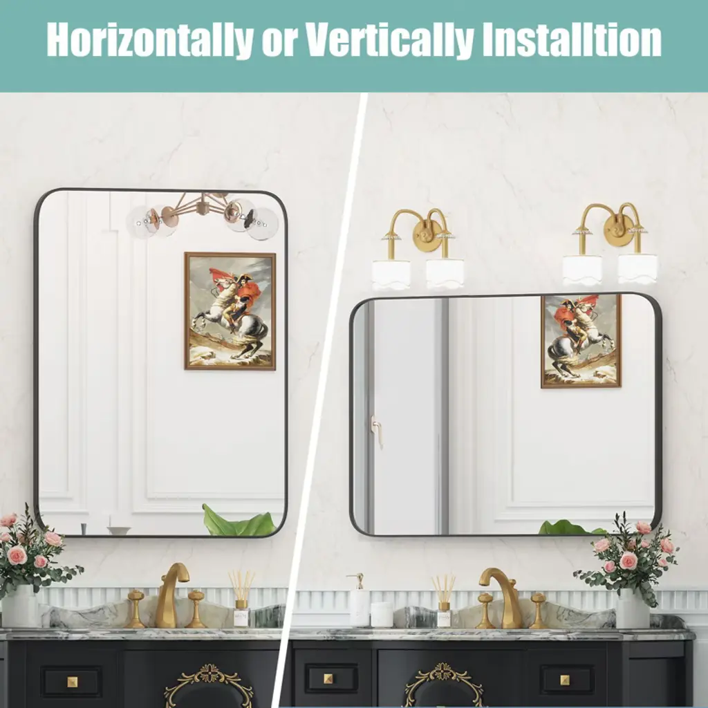 48x30" Wall Bathroom Mirror – Black Frame, Moisture-resistant & Shatter-safe Design (Horizontal/vertical)