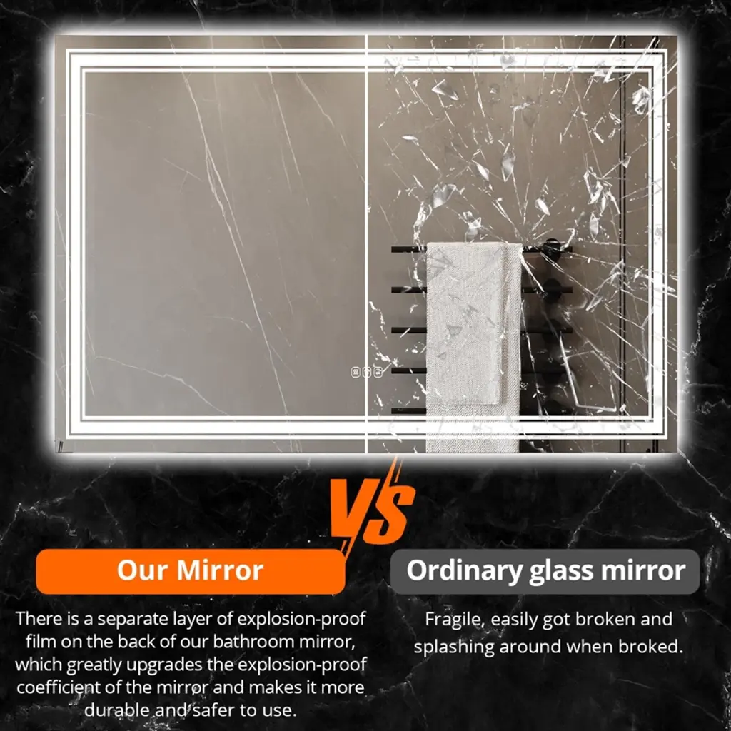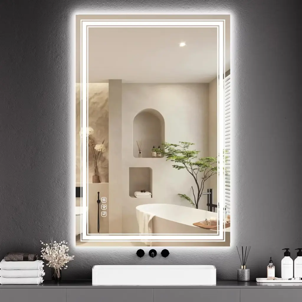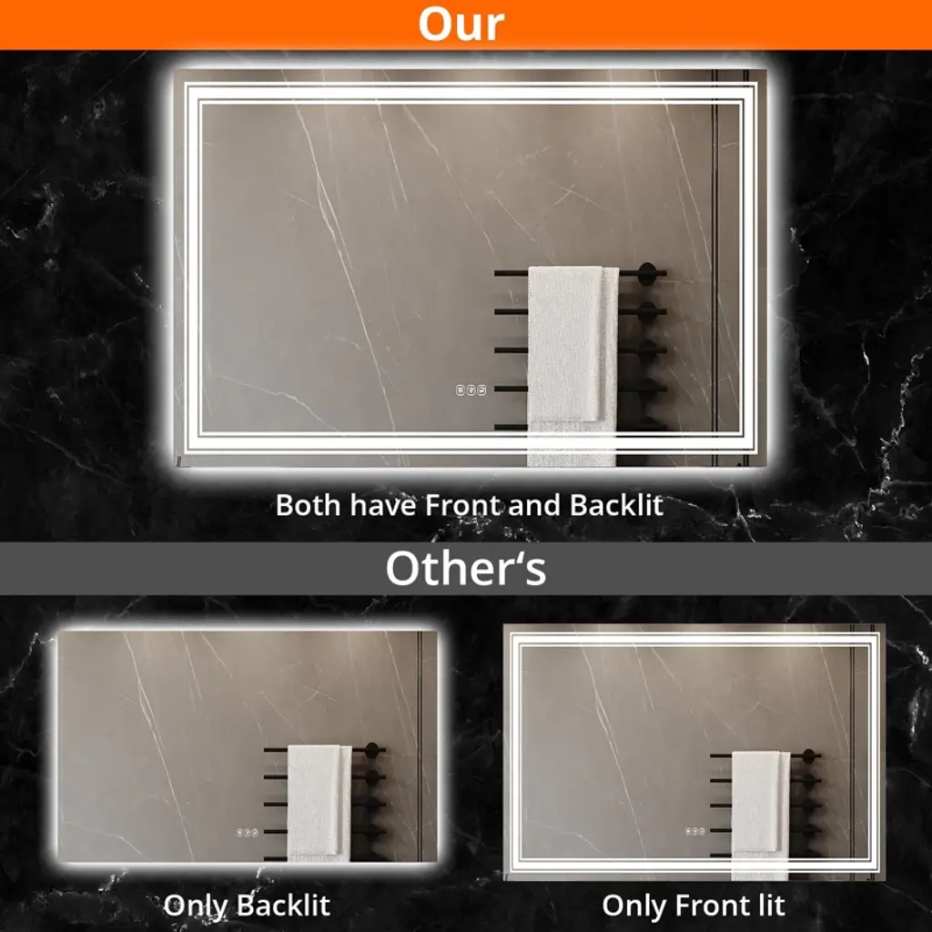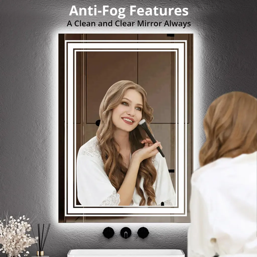 48x32 LED Bathroom Mirror with Lights,Anti-Fog,Dimmable,Backlit + Front Lit,Memory,Bathroom Vanity Mirror with Lights,3 Colors, Double LED Vanity,Lighted Bathroom Mirror,Stepless Dimming