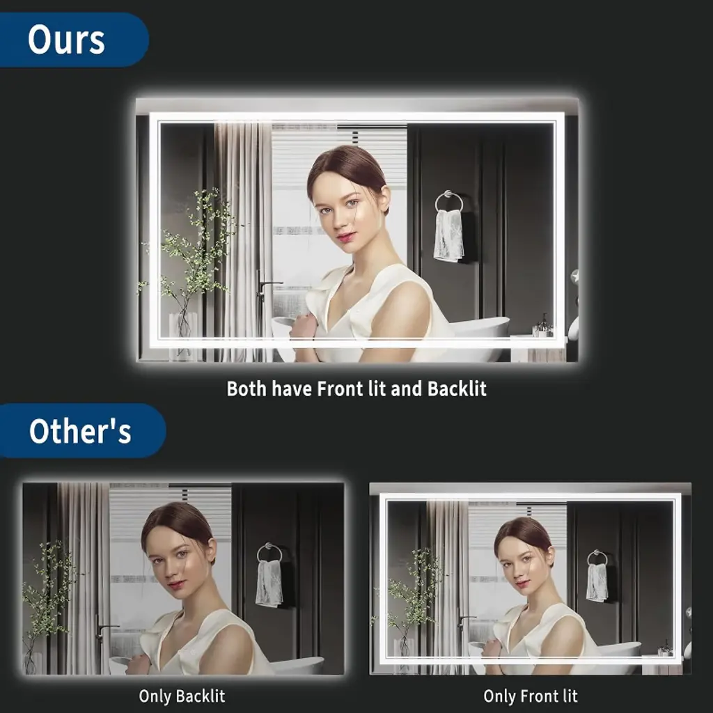 48x36 Led Bathroom Vanity Mirror - Front & Back Dual Lighting, Anti-fog, Dimmable, Wall-mounted Lighted Mirror