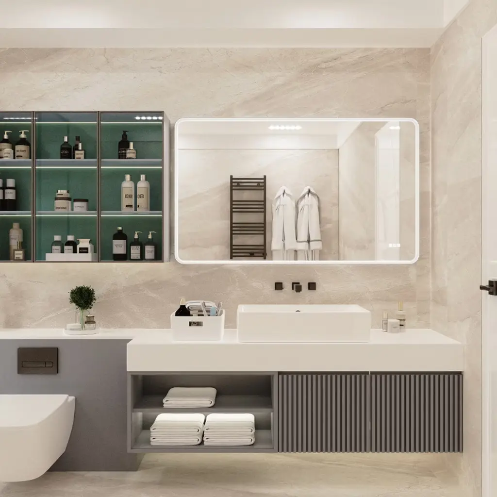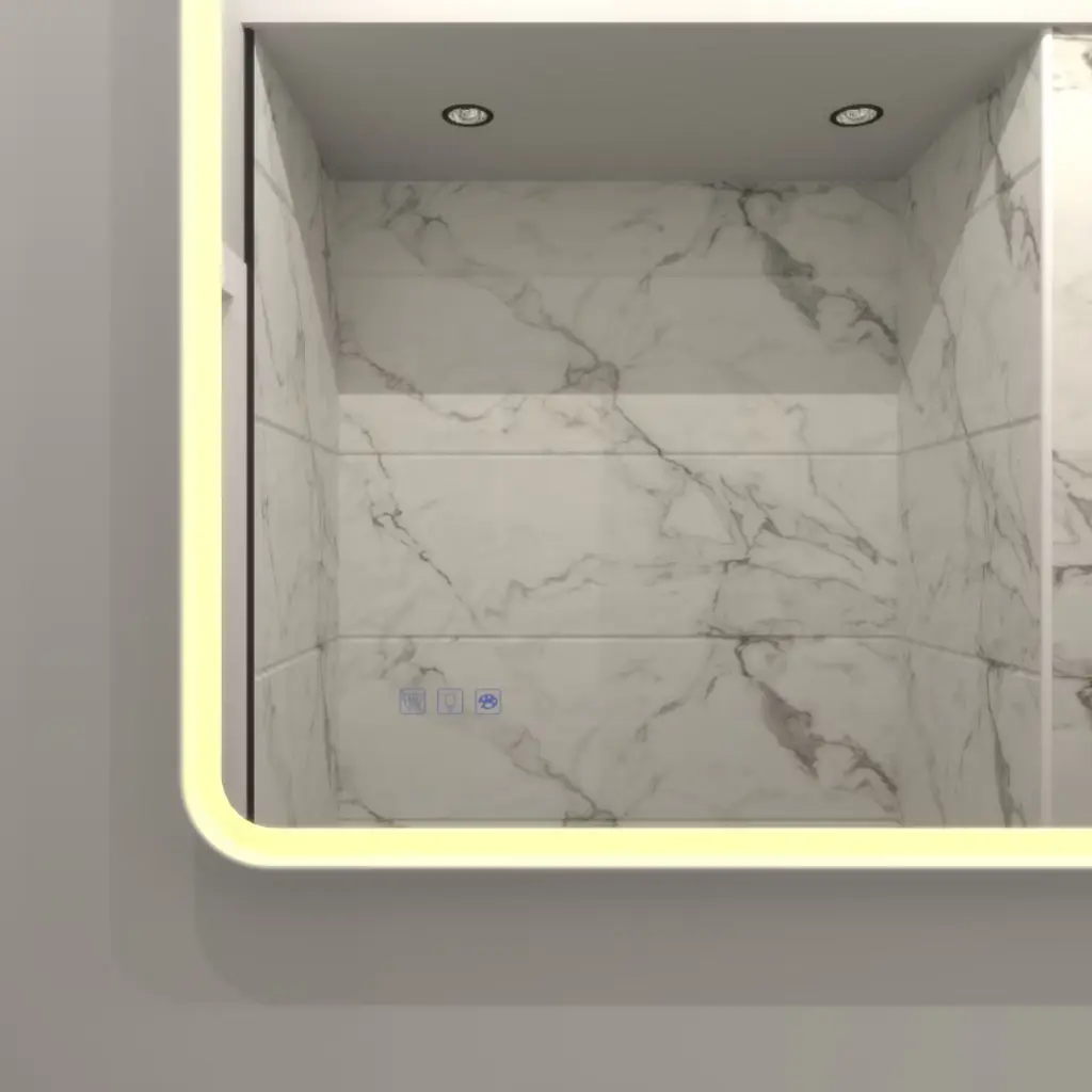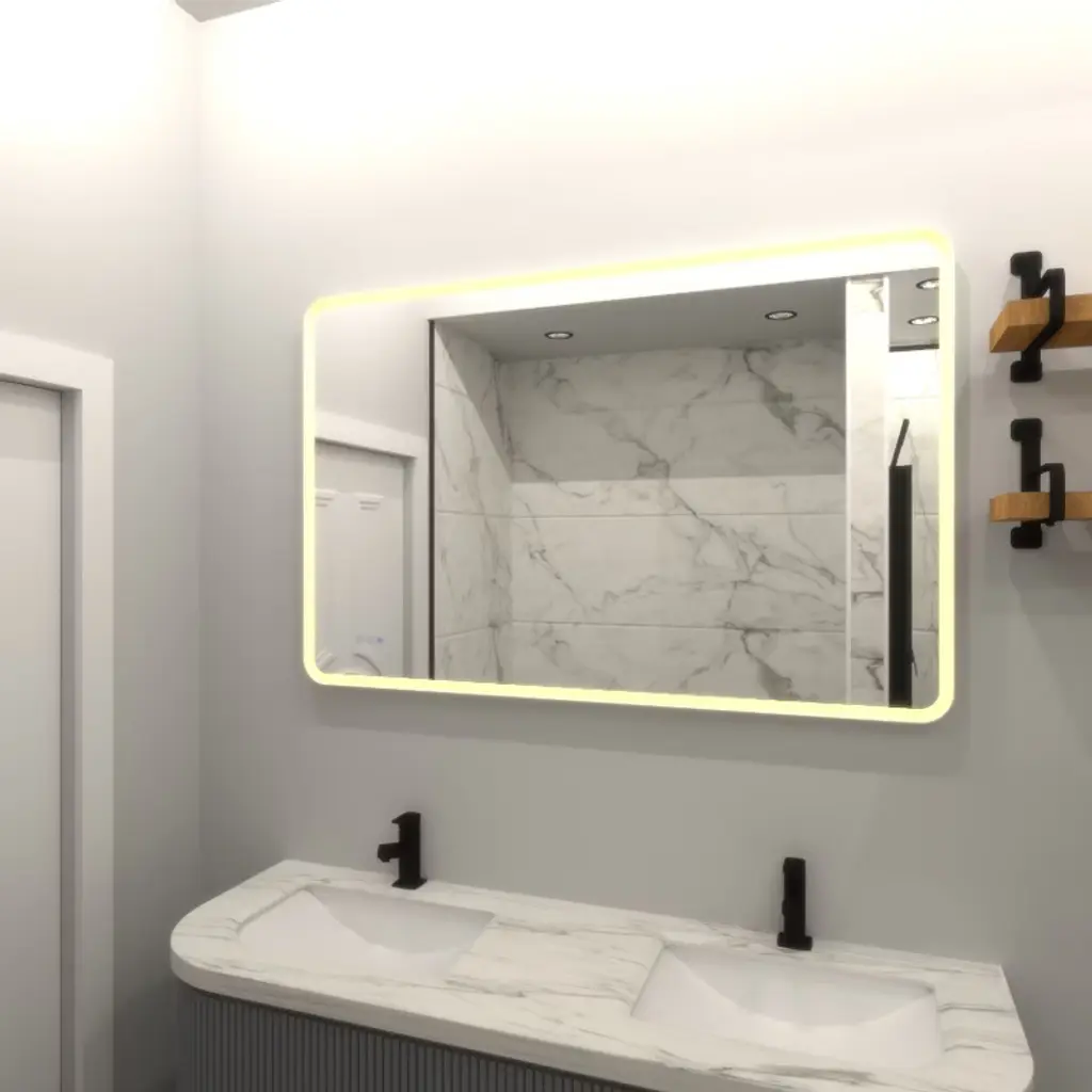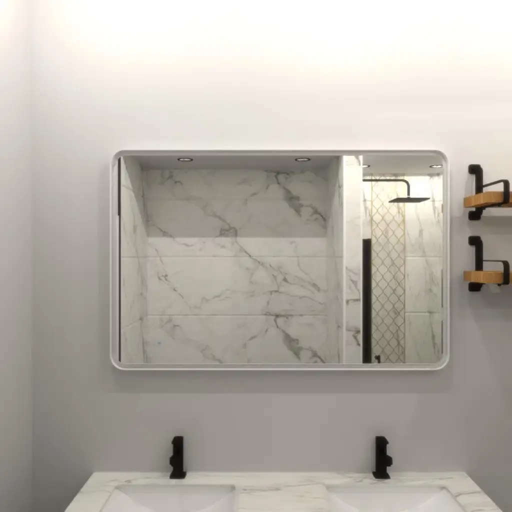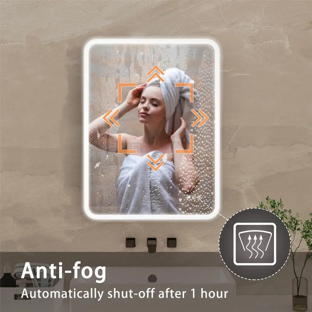 Eco-Friendly LED Vanity Mirror: Durable 5mm eco-friendly mirror with a premium silver coating for enhanced clarity and reflectionAnti-fog Feature: Built-in defogger with auto shut-off after 1 hourMemory Function: Smart memory function that automatically recalls your preferred brightness setting every timeSeamless Color Temperature & Brightness: Enjoy customizable ambiance with stepless color temperature adjustment from a warm 3000K to a crisp 6500K. Adjustable brightness for any moodWhite Iron Frame Lighted Mirror: Elegant white iron frame with a smooth touch, designed to resist fingerprints and maintain a pristine appearanceOver 3000 Lumens: Exceptional brightness with over 3000 lumens, offering superior illumination that outshines standard vanity mirrors on the marketSuperior CRI over 90 delivers vibrant, natural color rendering for a more authentic visual experience
